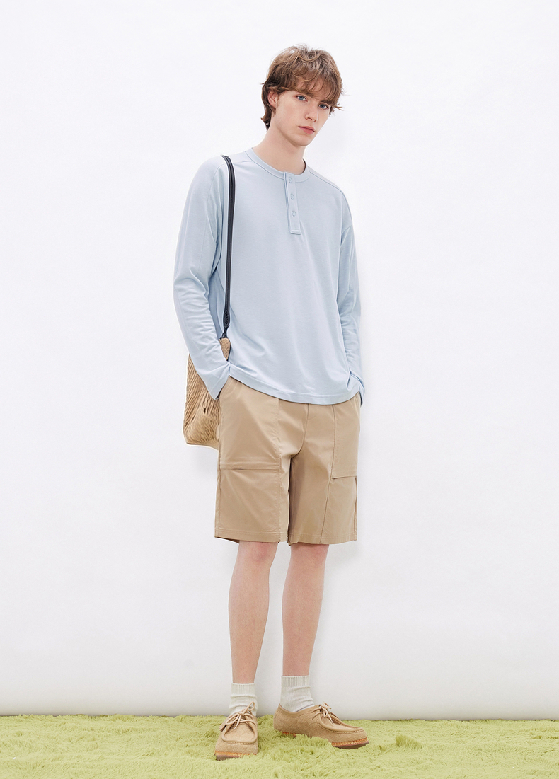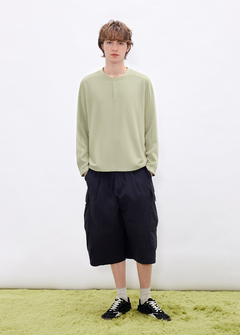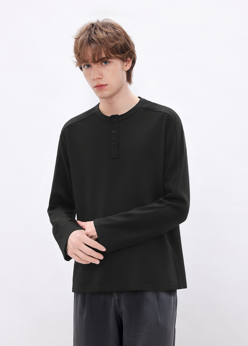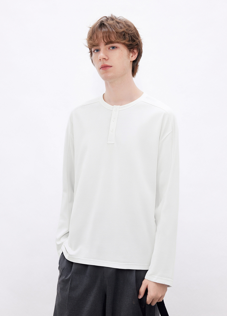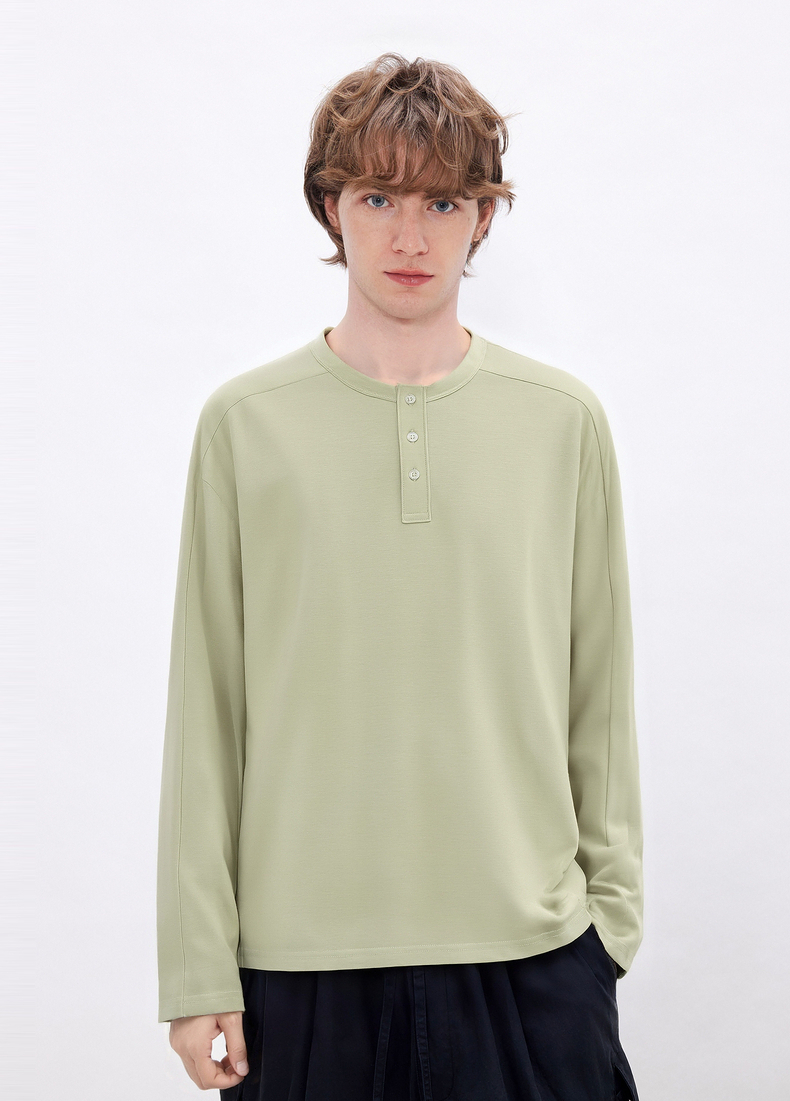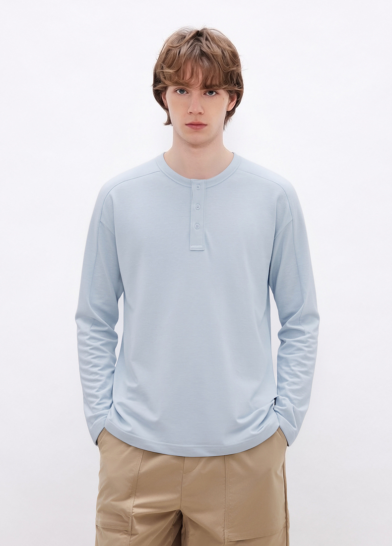 gxgjeans男装 多色基础亨利领宽松长袖T恤打底男士 26春新品