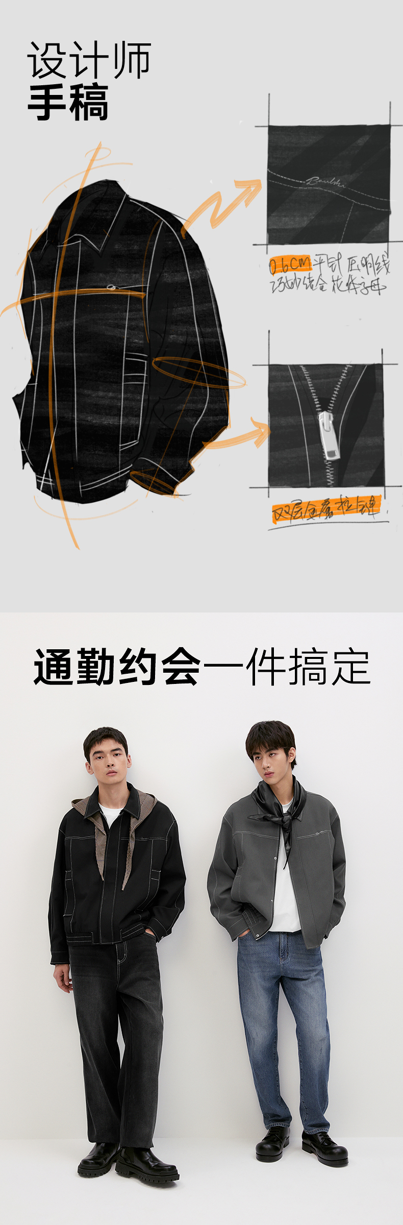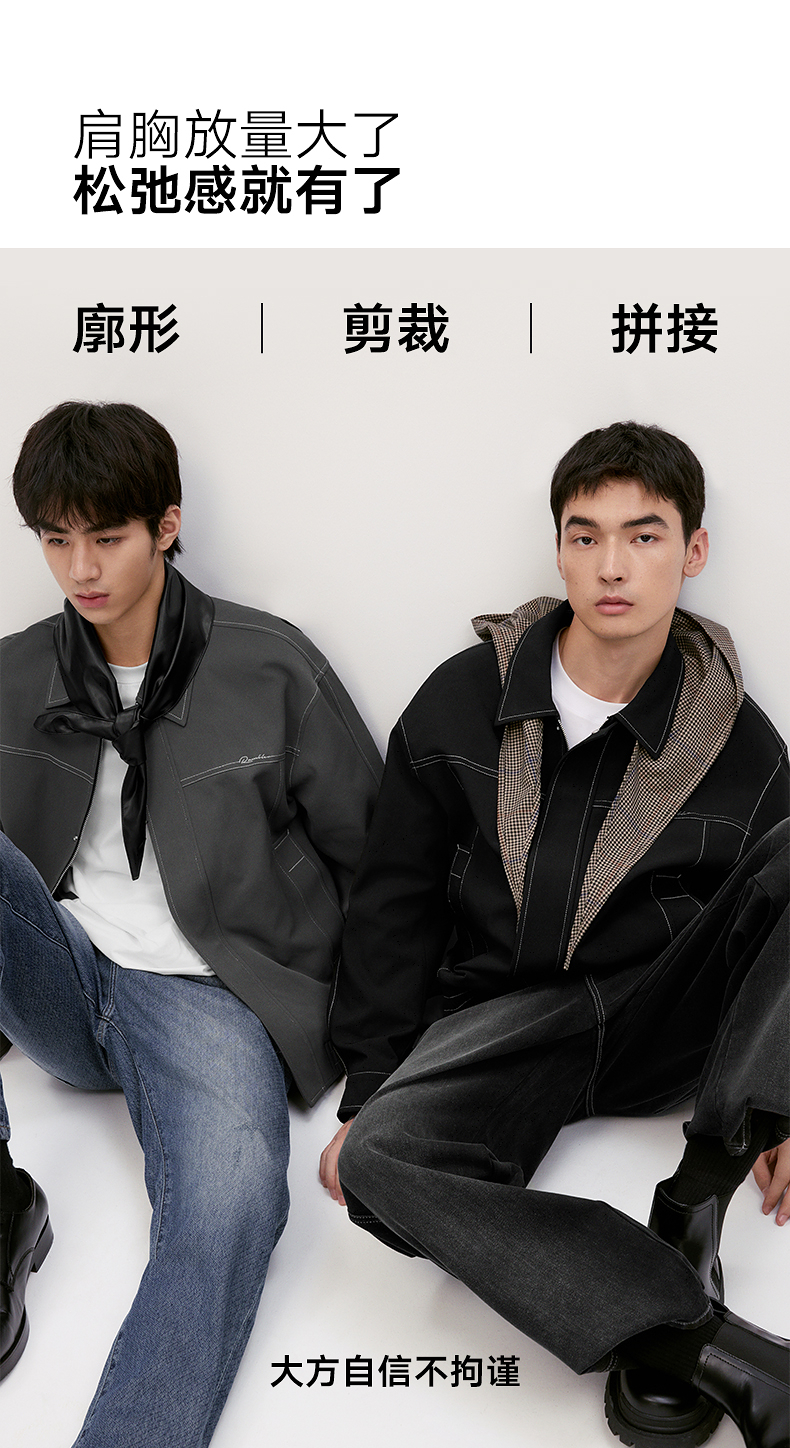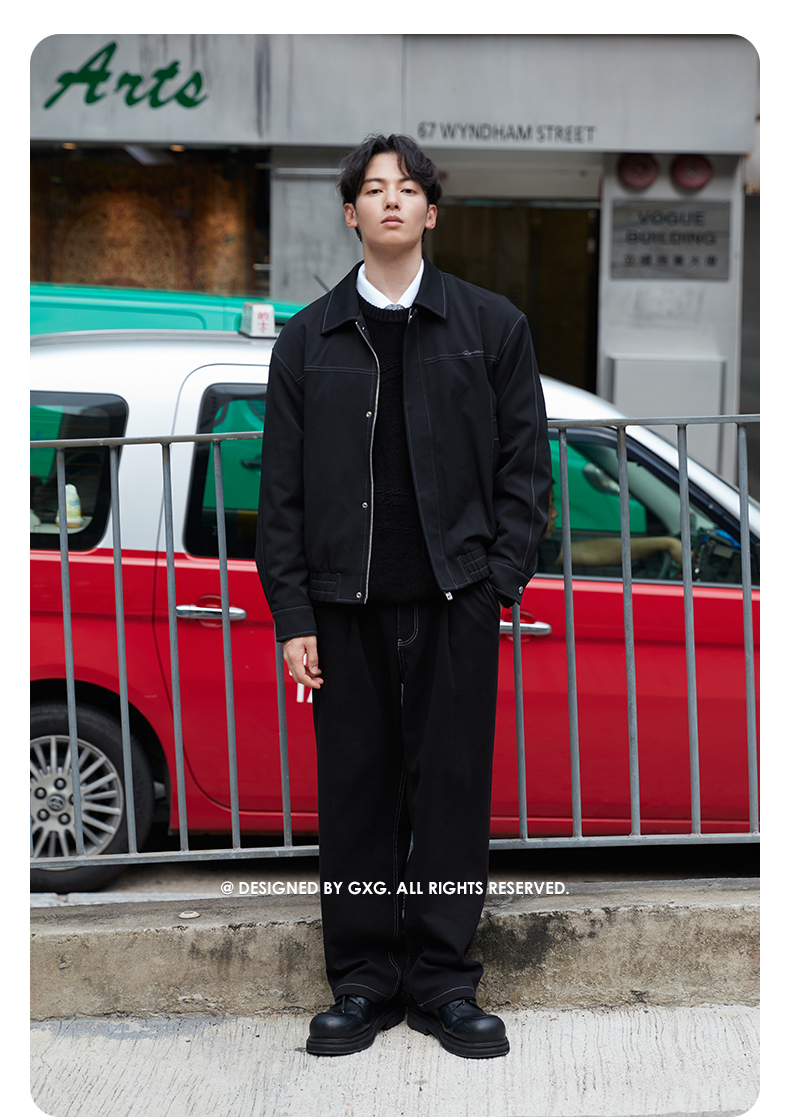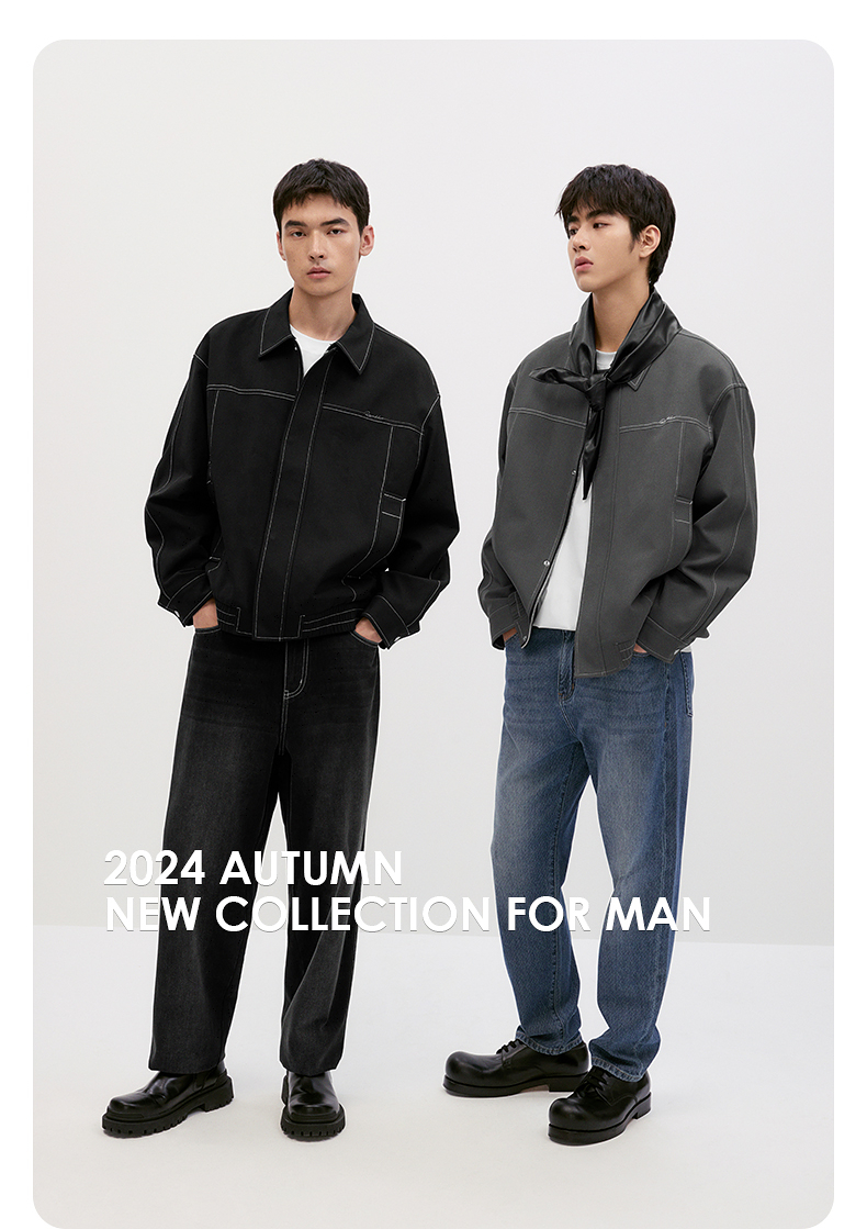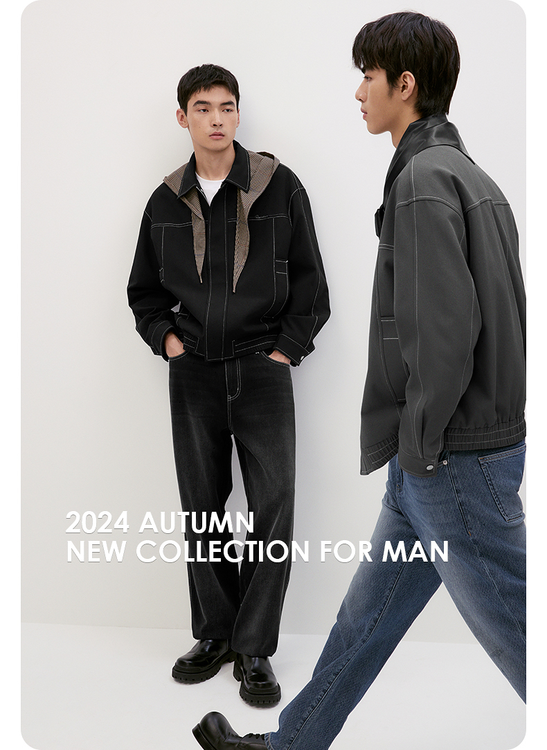 GXG男装 【中空纱】简约明线设计翻领夹克男休闲外套 秋季热卖