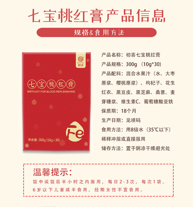 初喜七宝桃红膏女性益血滋补孕妇调理玉灵膏补中膏方300g