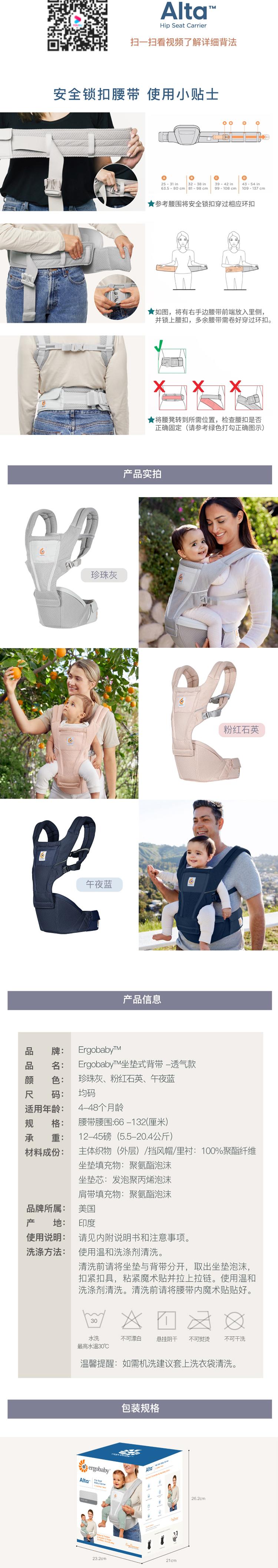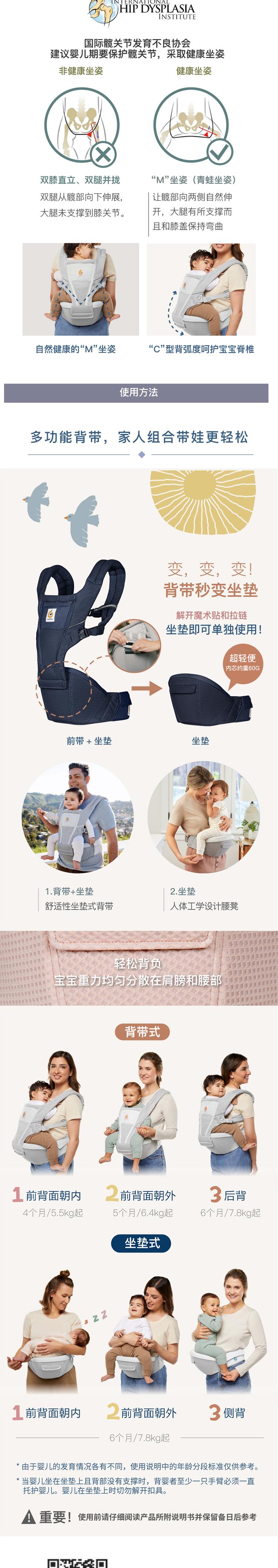 美国 Ergobaby婴儿腰凳透气背带轻便坐凳背袋腰凳正品4个月-4岁