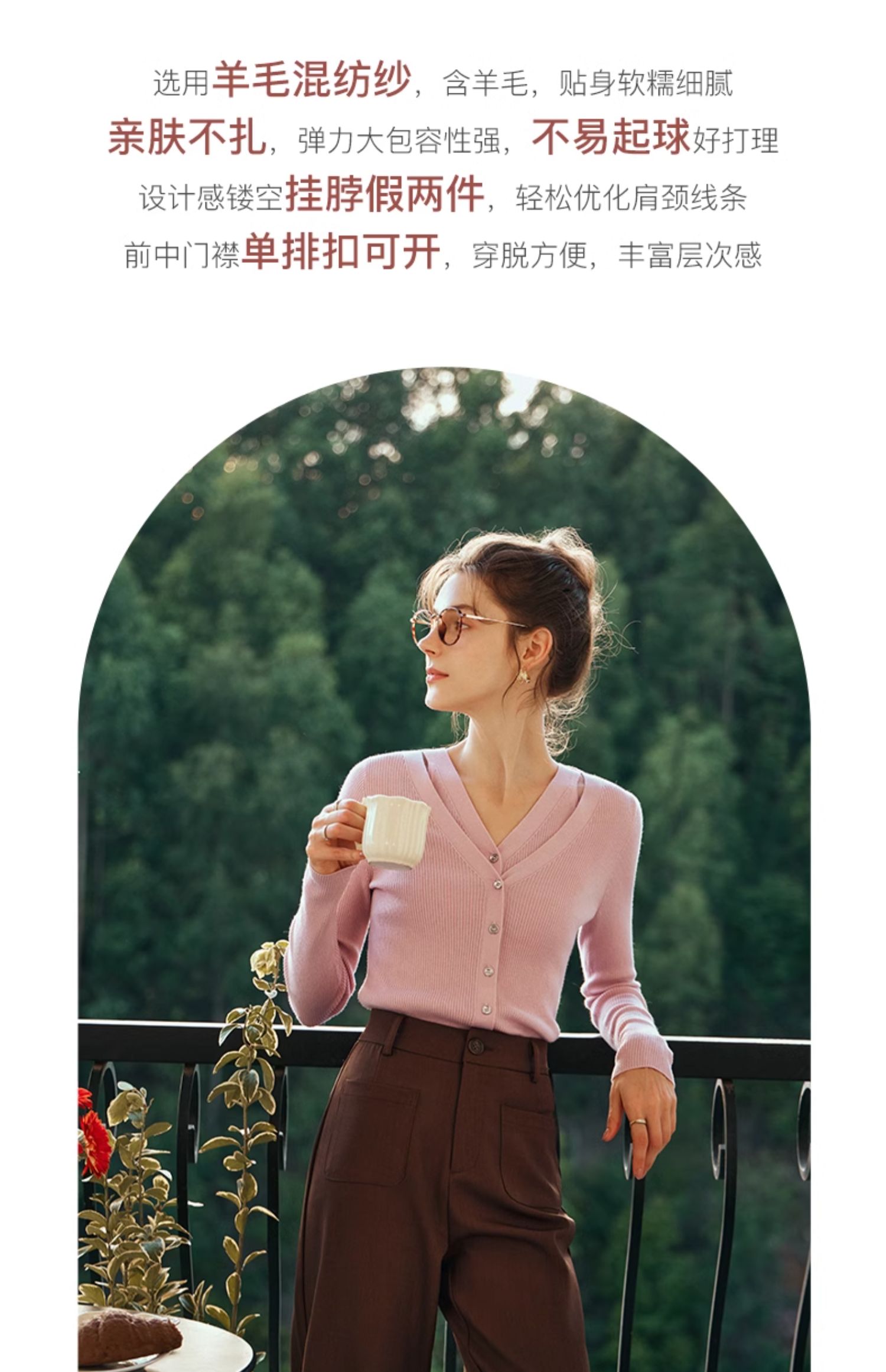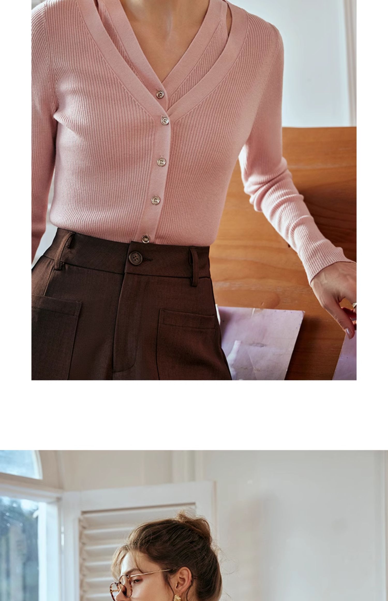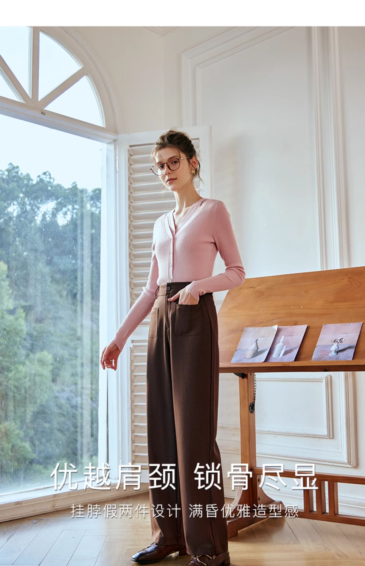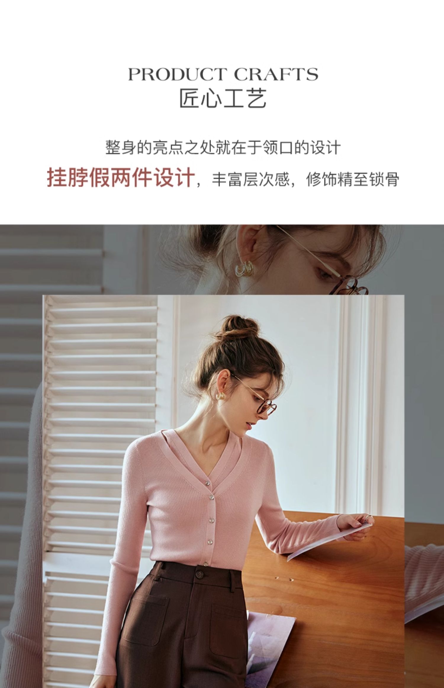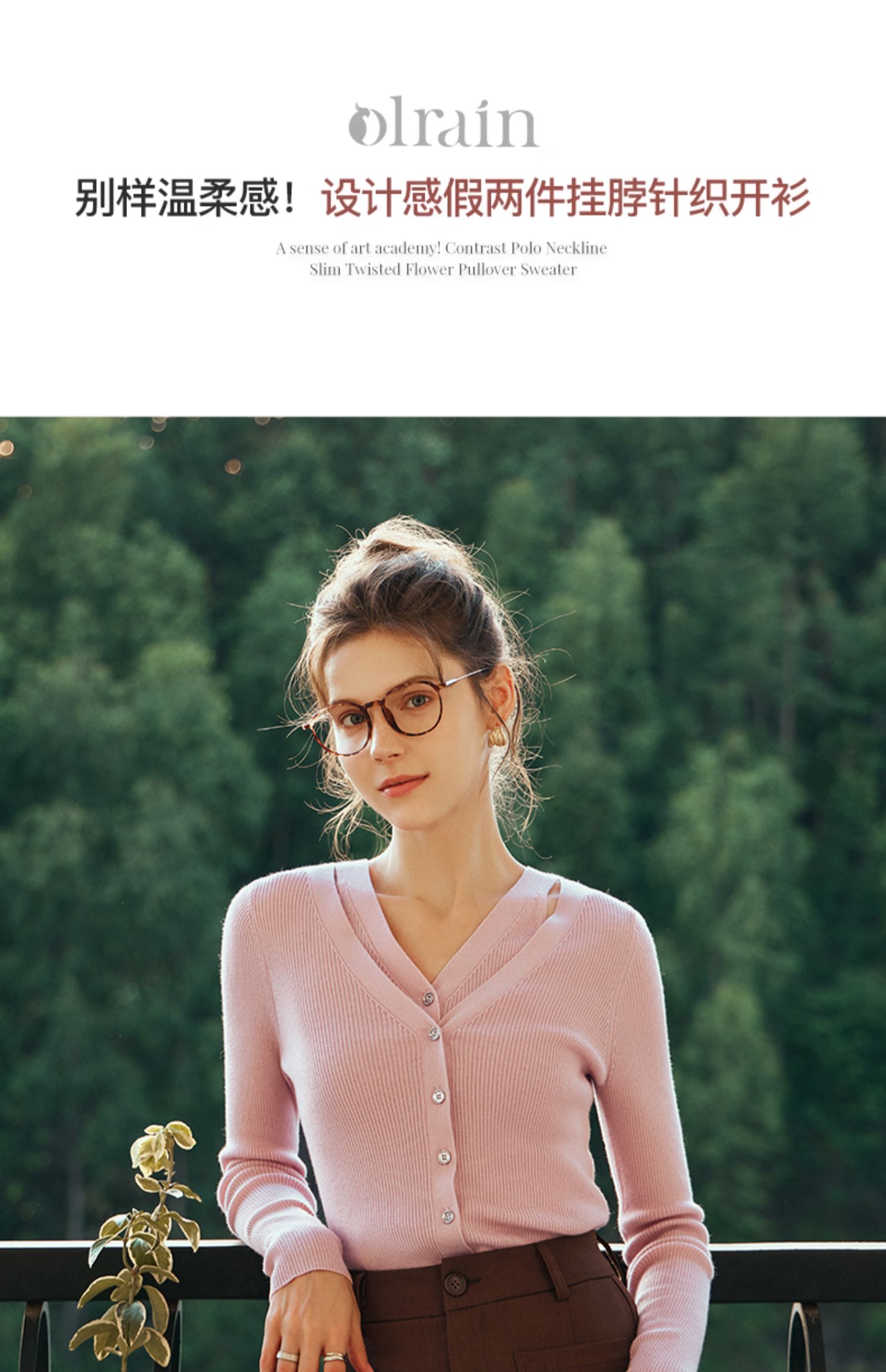 OLrain欧芮儿粉色针织衫女春季2025新款设计感假两件挂脖修身上衣