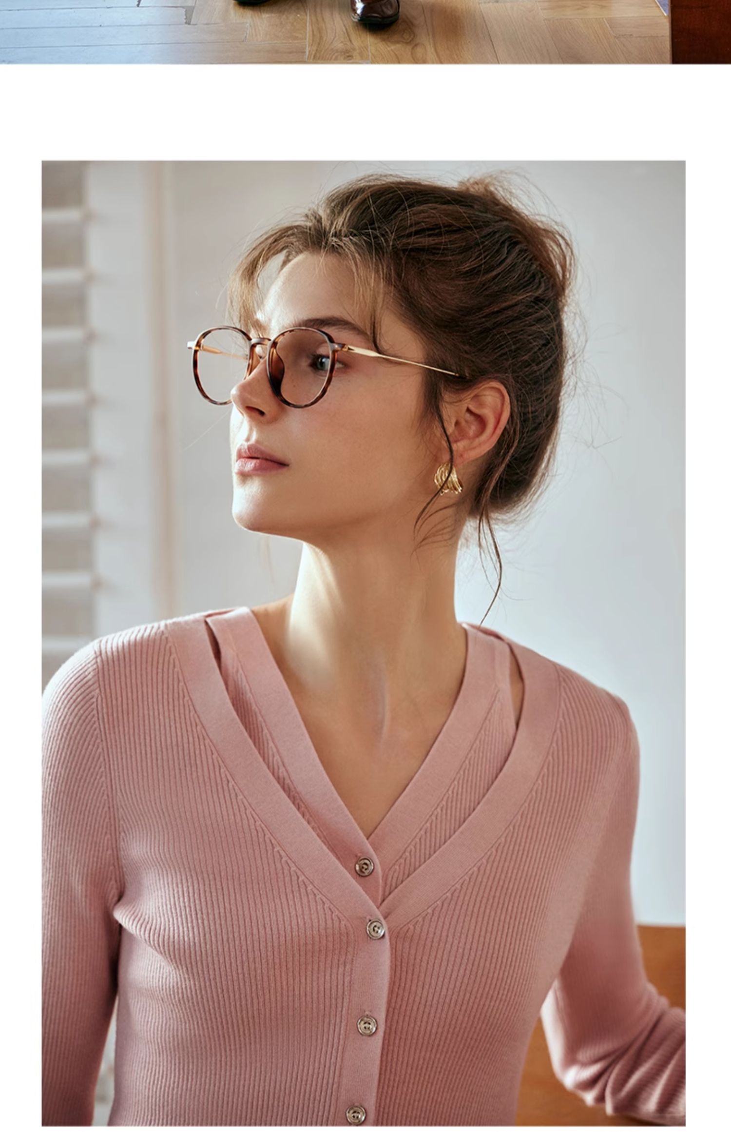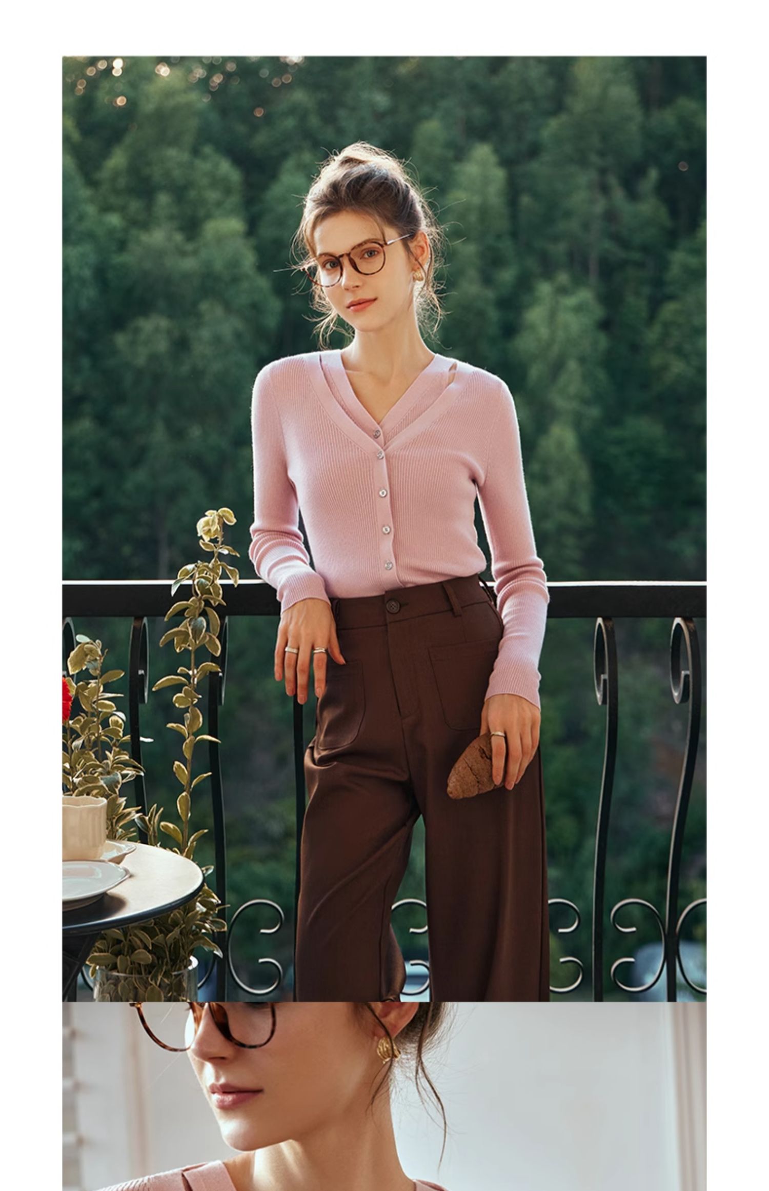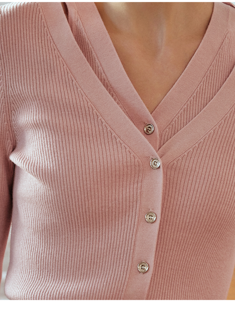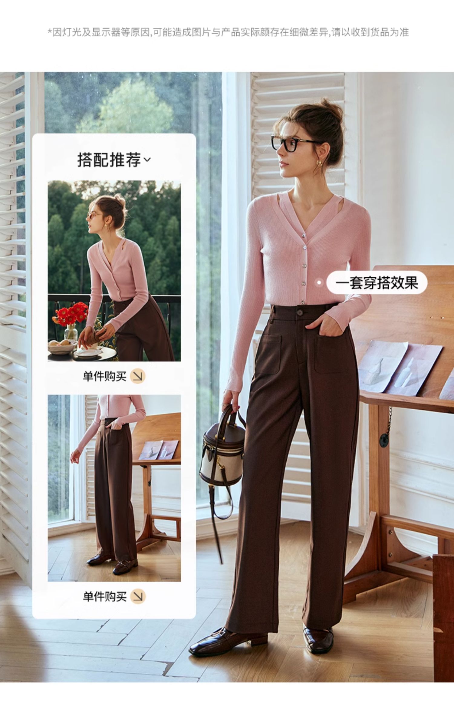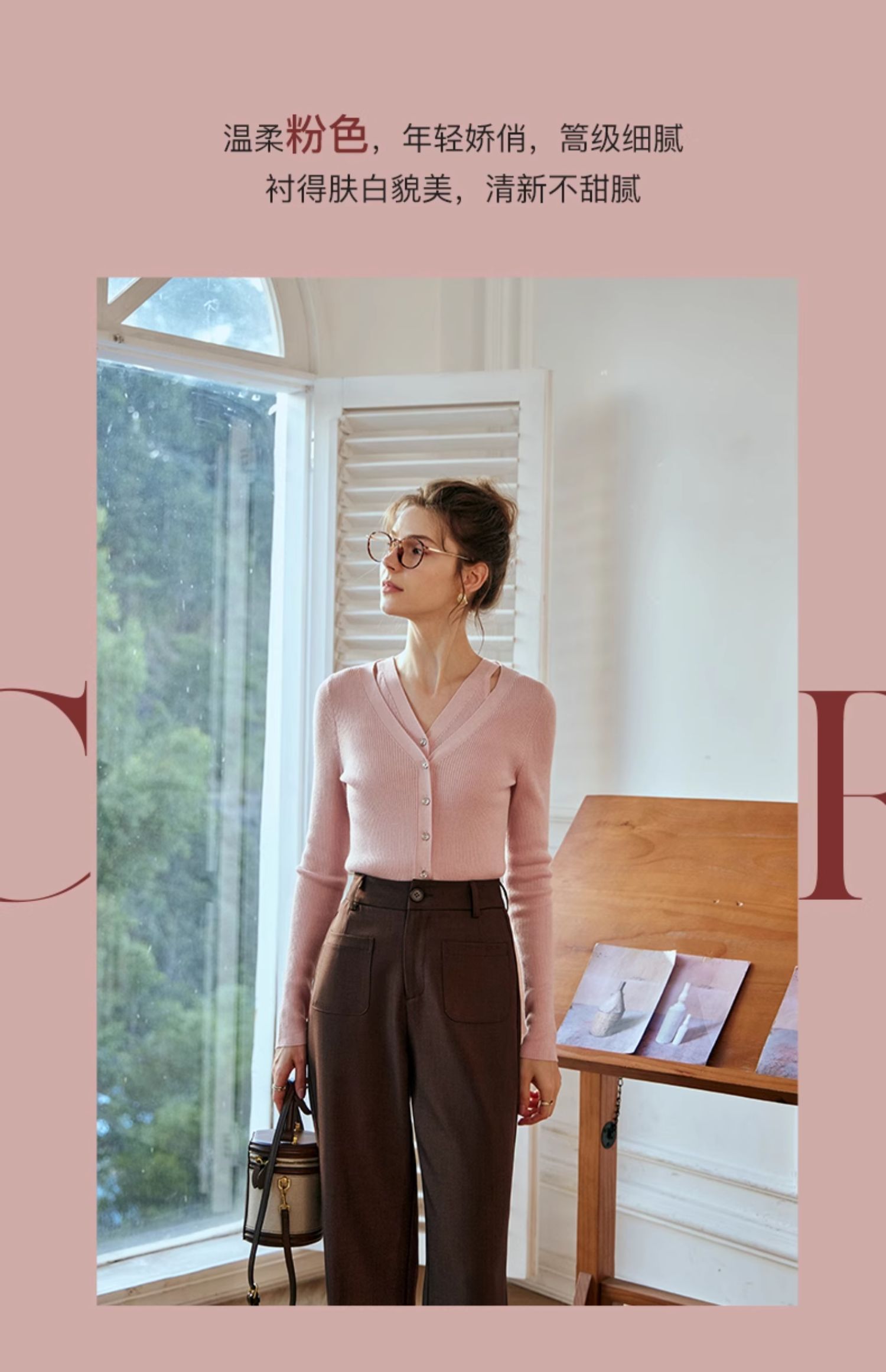 OLrain欧芮儿粉色针织衫女春季2025新款设计感假两件挂脖修身上衣