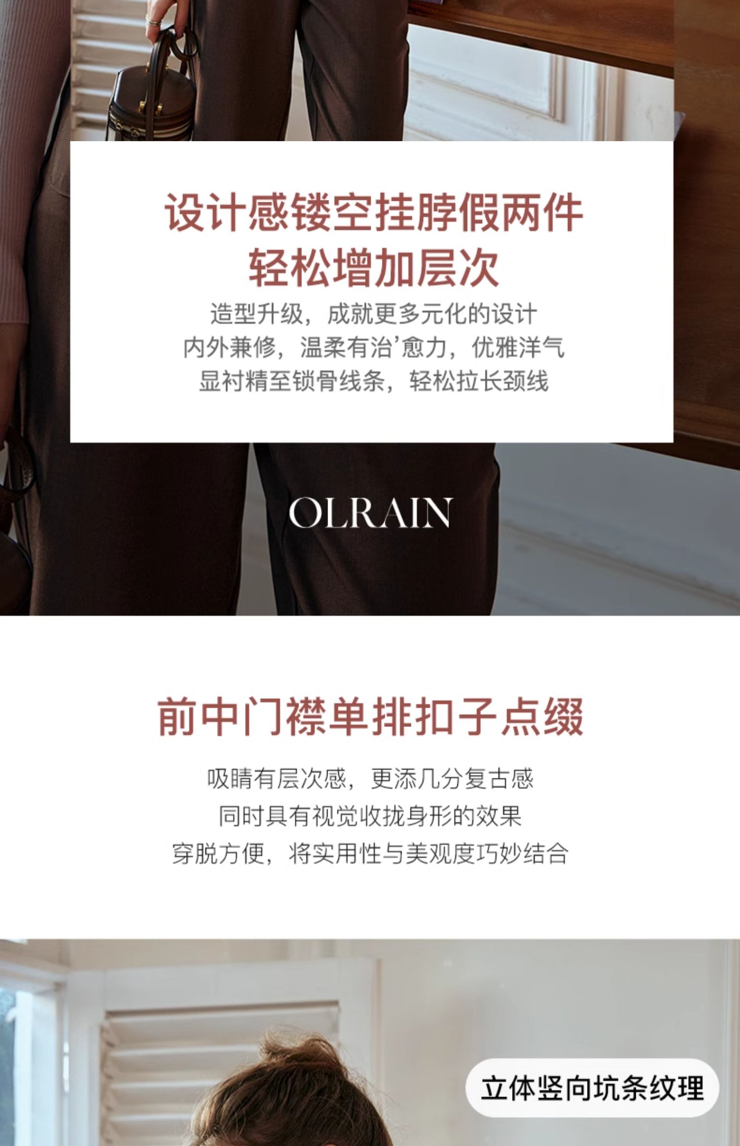 - “精致”是欧芮儿olrain品牌文化的核心,欧芮儿认为,精致的女人,不但要外在动人,更要内在迷人,内外兼修,有魅力、有气质、有内涵,自信而不自傲,优雅而不矫揉,自有万种风情而不轻浮,更不故作矜持。