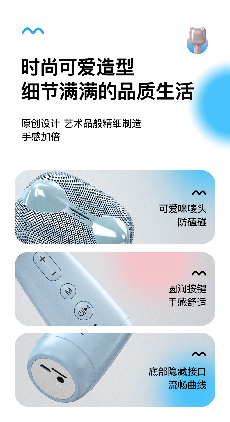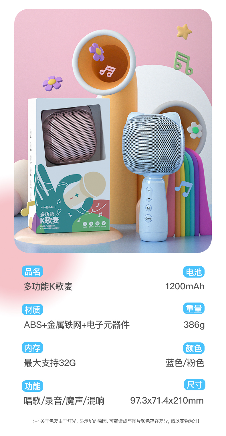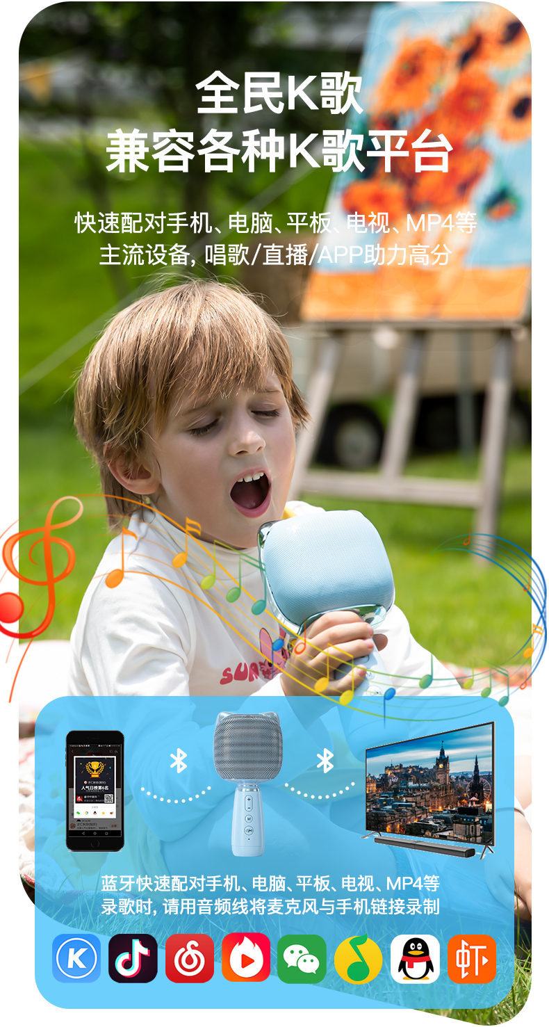 【儿童蓝牙麦克风 随时随地都能唱】科物酷无线蓝牙K歌话筒,兼容各种K歌平台,还是蓝牙音响使用哦~