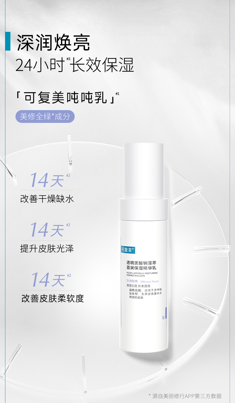 【可复美吨吨乳】可复美透明质酸钠藻萃盈润保湿精华乳80ml/瓶
