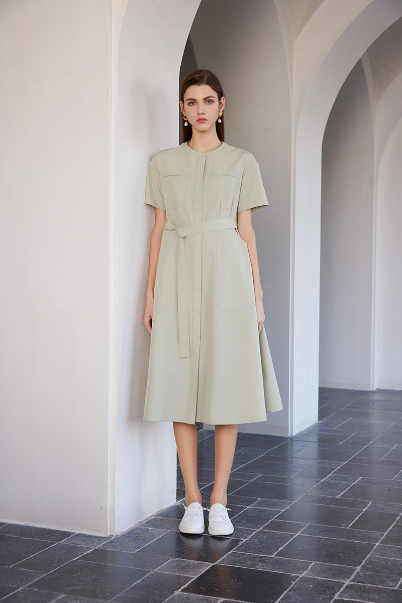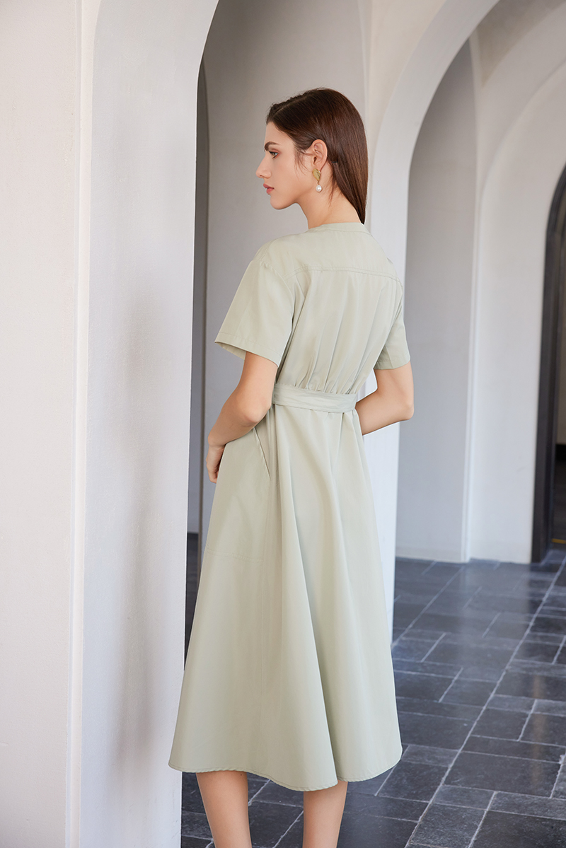 【中长款系带连衣裙】2024春夏新品女士中长款浅绿色休闲连衣裙