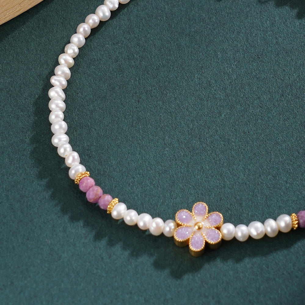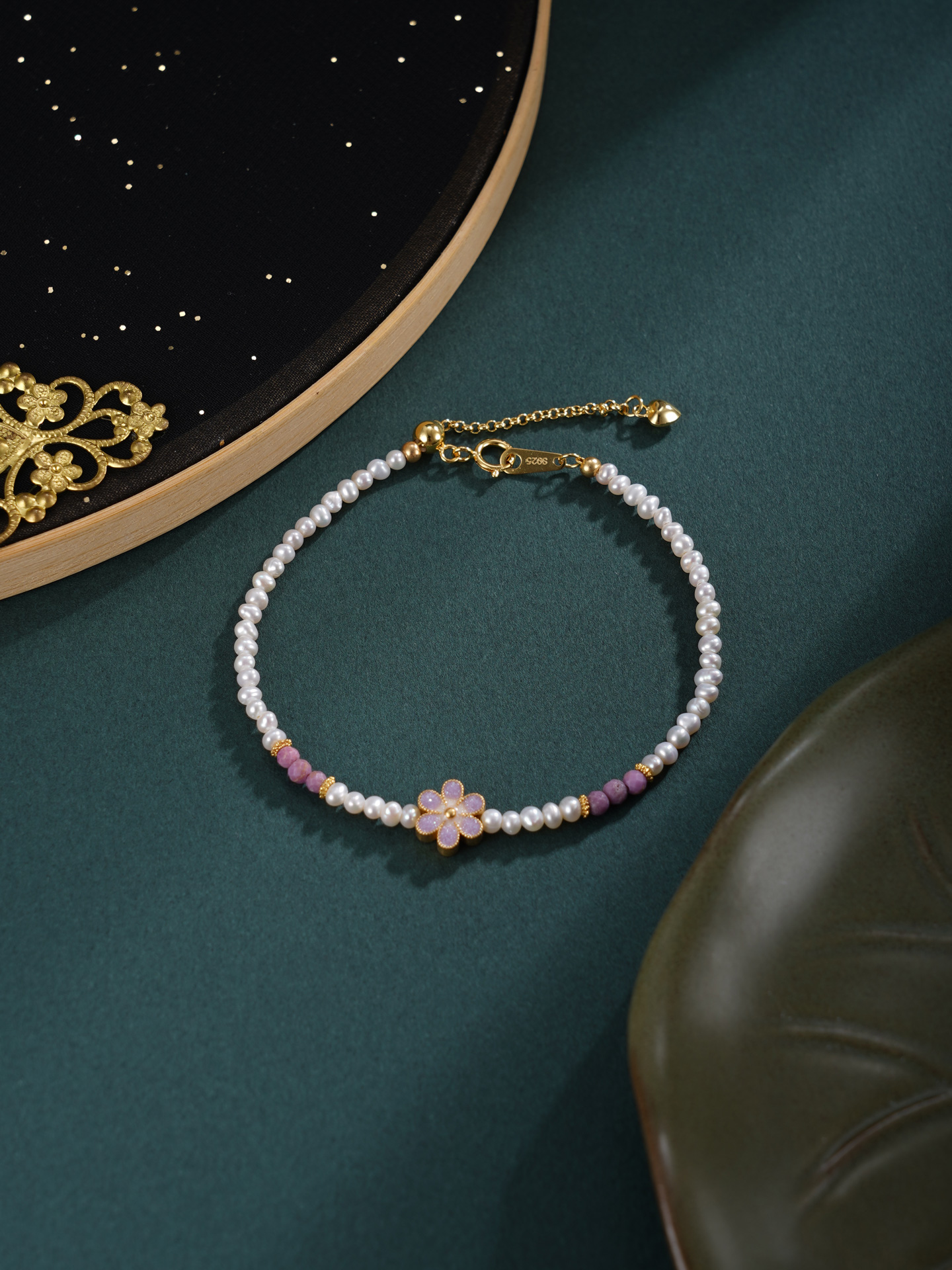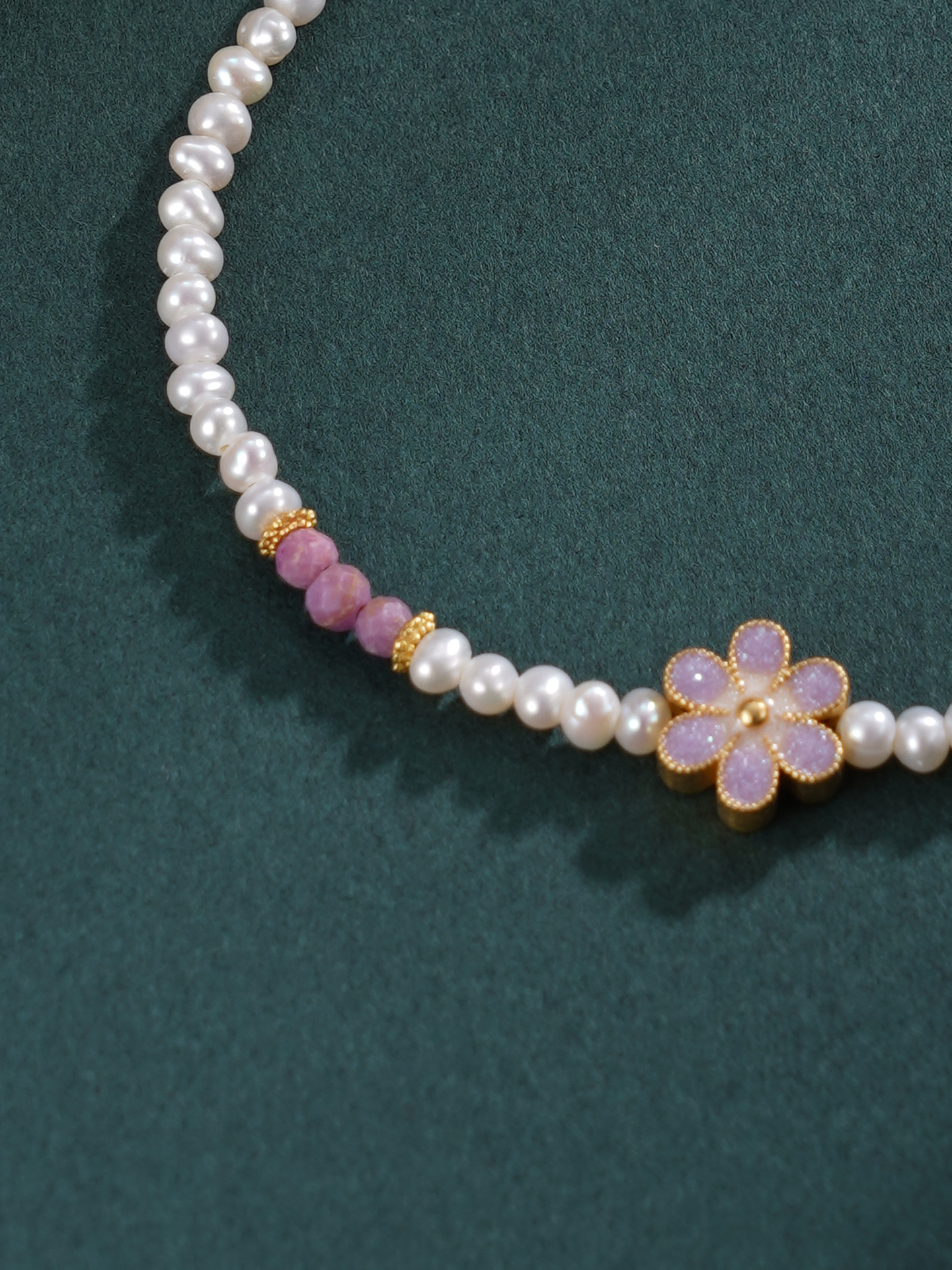 子佩集【紫梦花海】银S925珍珠惜王妃手链【SGB0770001】2.8mm珠镀金紫五瓣花朵2601