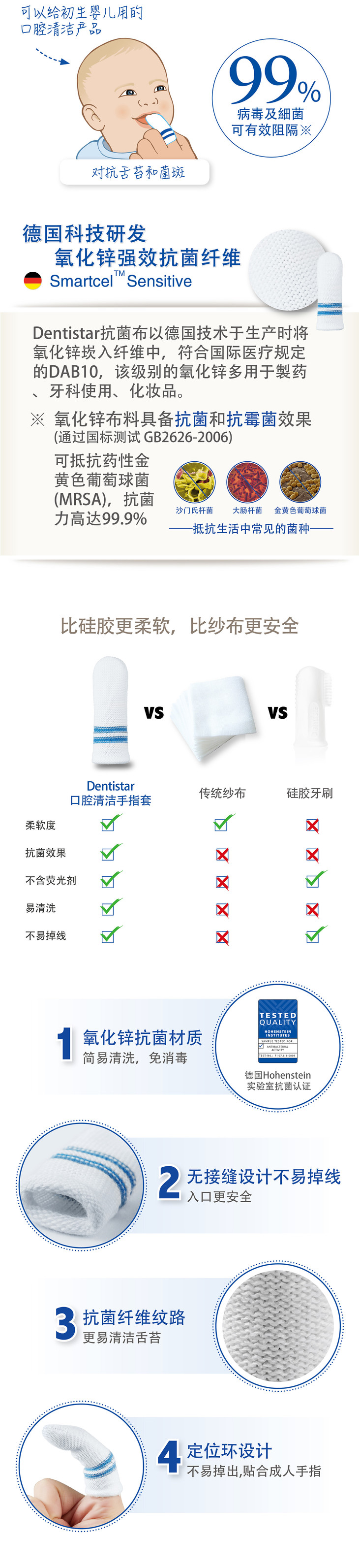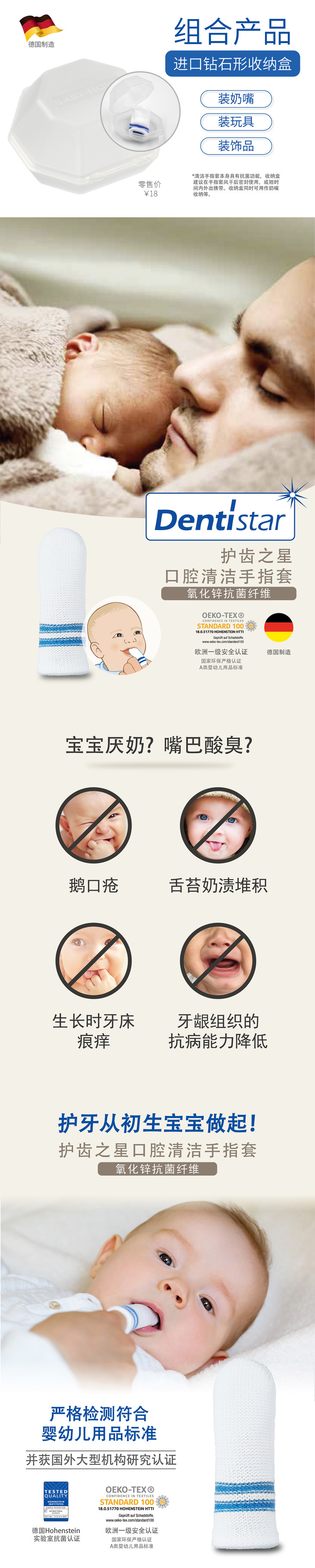 *Dentistar护齿之星指套牙刷 宝宝婴儿口腔清洁器 舌苔奶垢纱布【德国进口】
