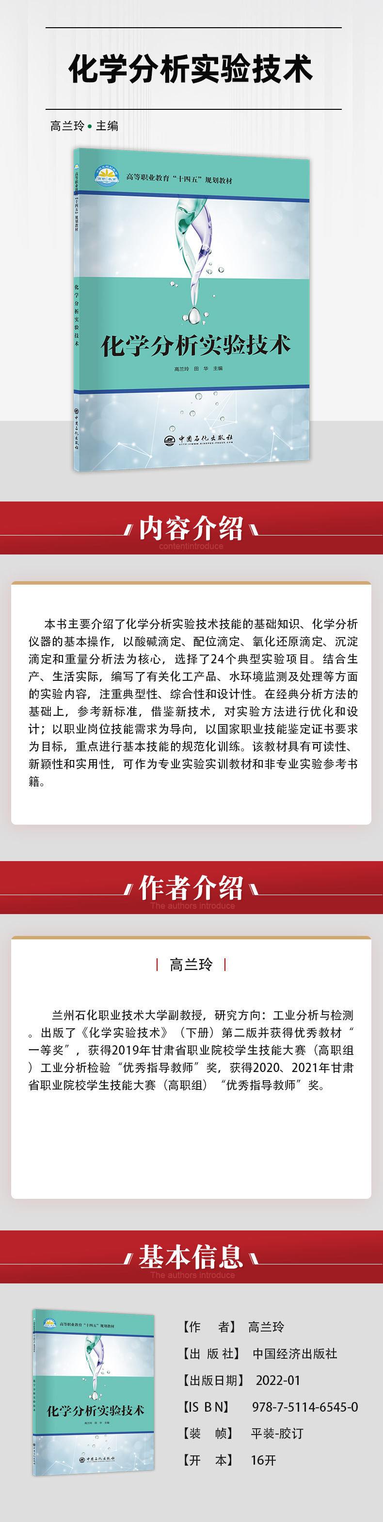 【旗舰店】化学分析实验技术(高等教育“十四五”规划教材)化学分析、化学实验、职业培训高兰玲、田华主编中国石化出版社
