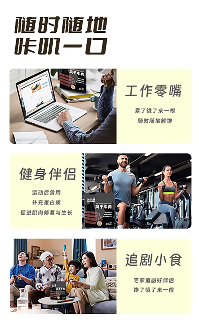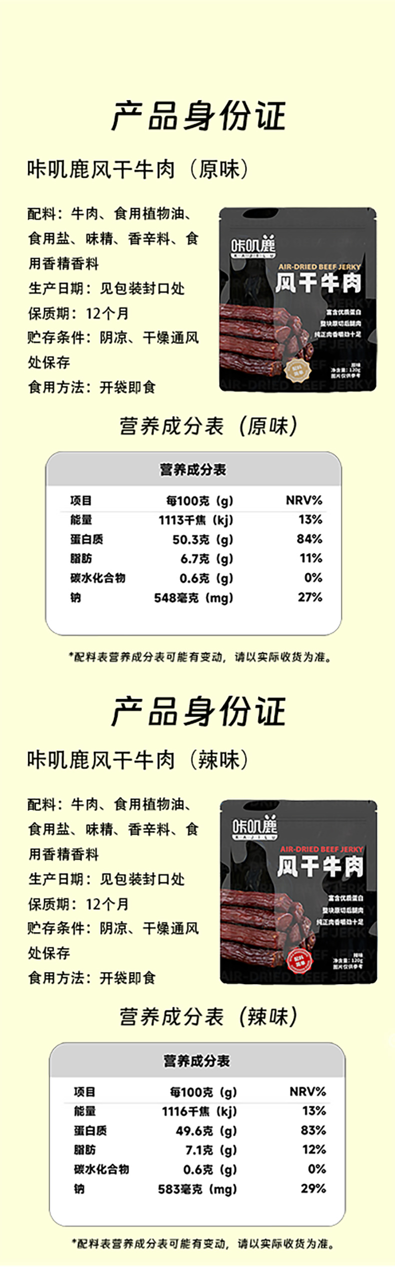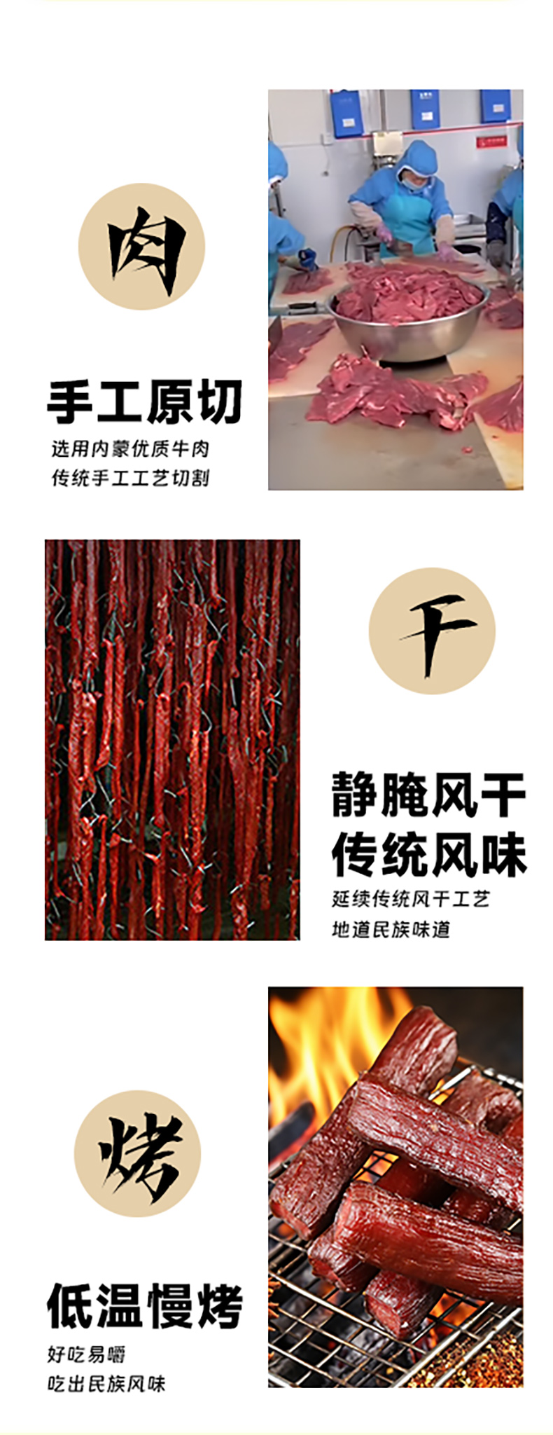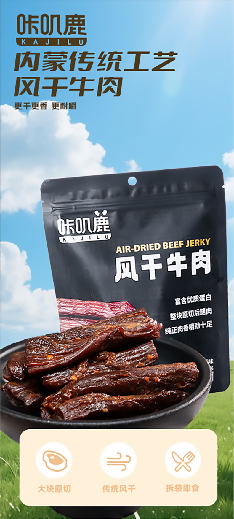 咔叽鹿风干牛肉干120g 辣味约7成风干内蒙特产量贩装休闲食品
