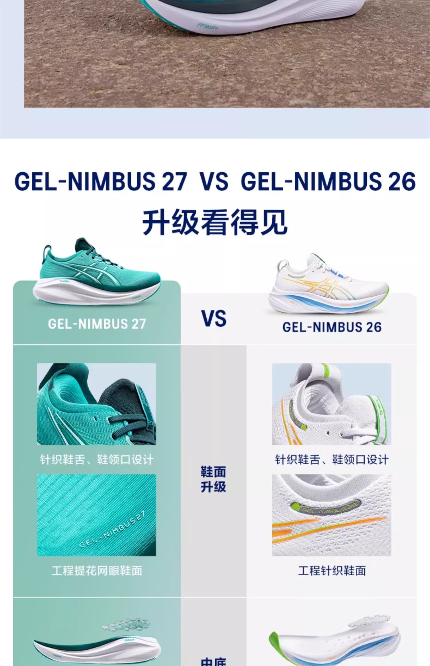 ASICS 亚瑟士NIMBUS 27 男款旗舰缓震透气舒适运动跑步鞋