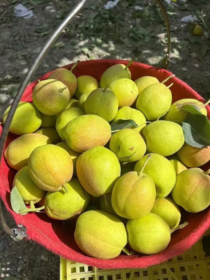 值得一提的是,种植过程中采用绿色种植方式,只使用农家肥,不打药、不催熟,每一颗香梨都是自然生长成熟。