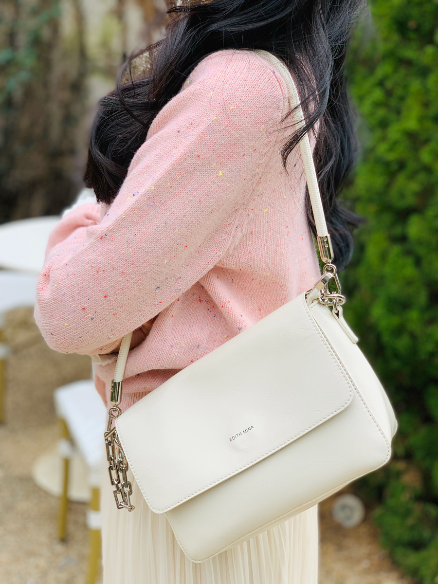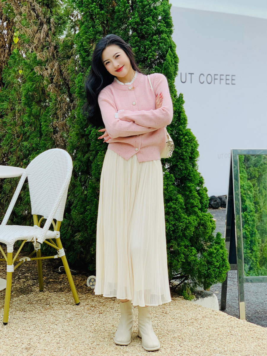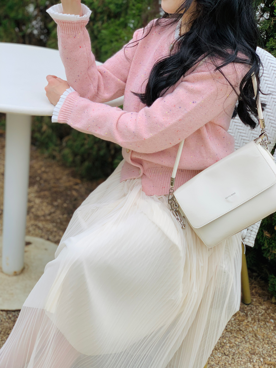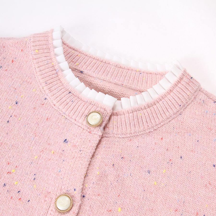 面料表面有五彩缤纷的糖粒,上身很有元气,趣味满满。