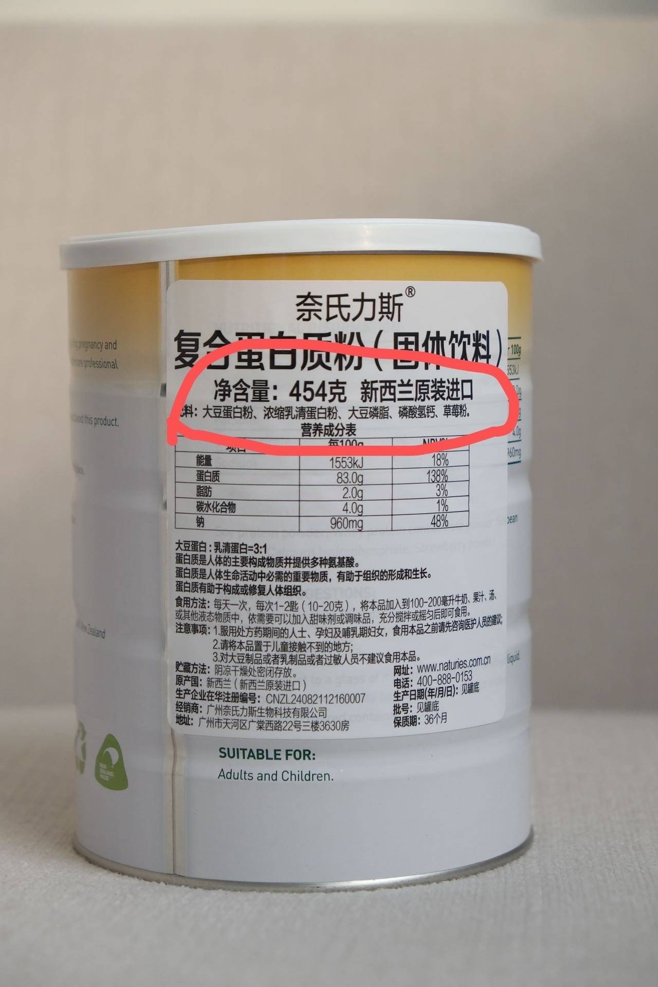 【品名】Naturise复合蛋白质粉 【规格】454g/罐 【生产日期】24年6月以后 【保质期】3年 【贮藏条件】常温 【产地】新西兰 【发货地】广州 【快递名称】极兔 圆通
