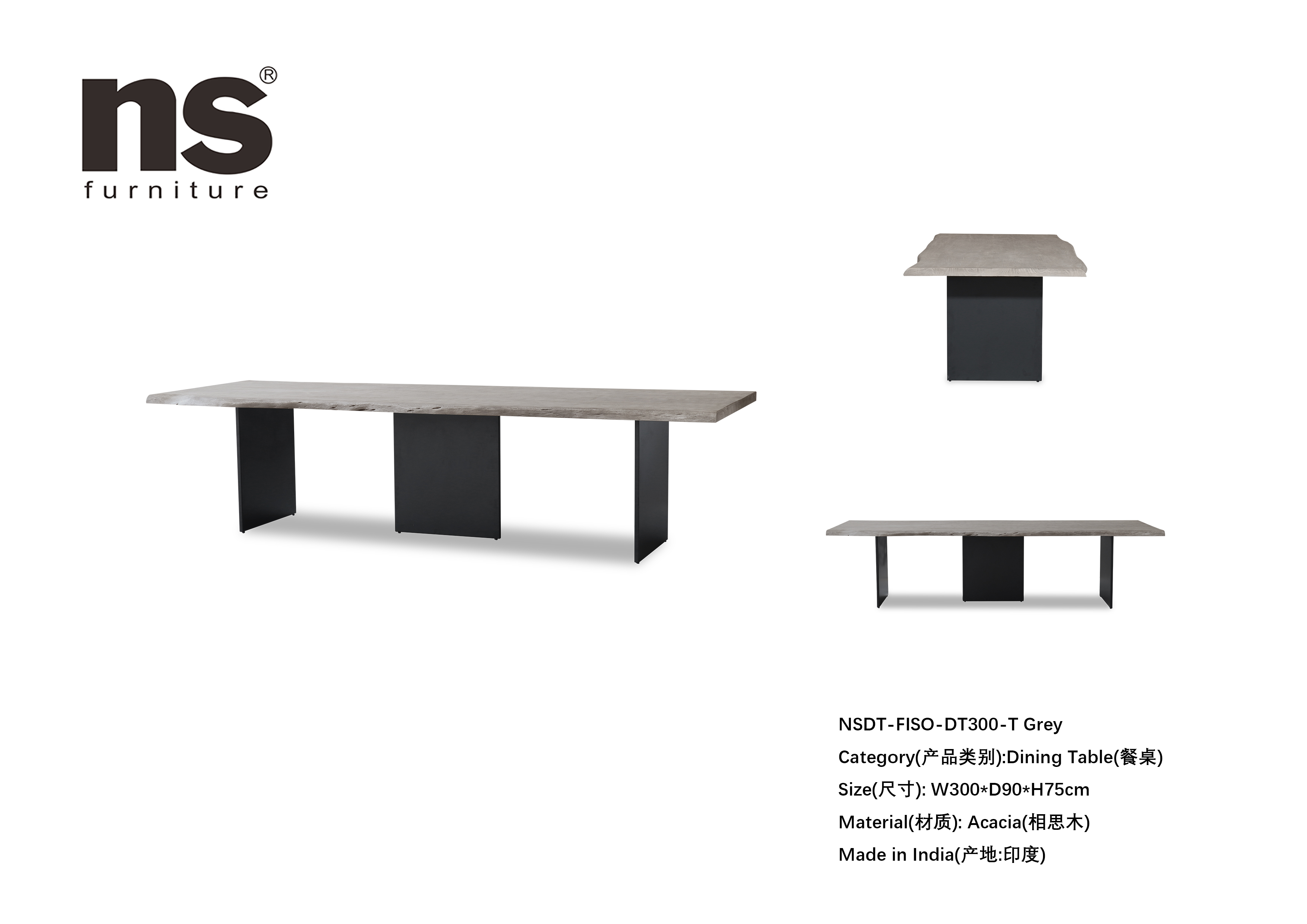 NS家居nsfurniture印度实木长桌NSDT-FISO-DT300-T Grey