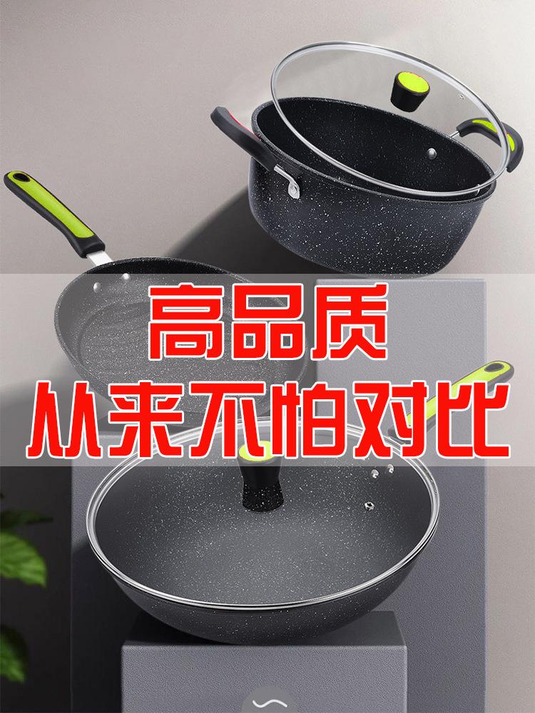 麦饭石三件套厨房组合炒菜锅套装锅具健康礼品炒锅
