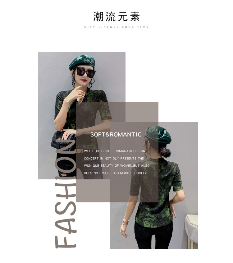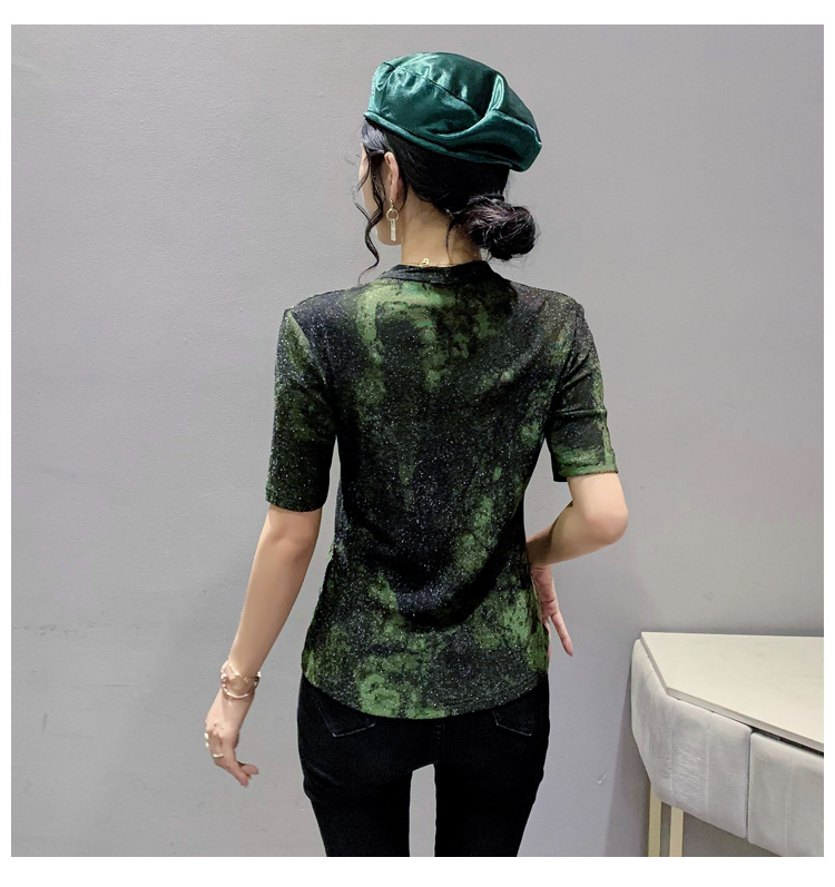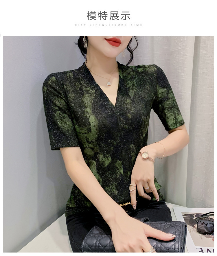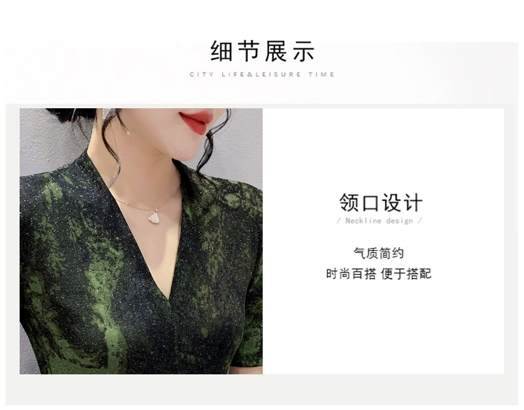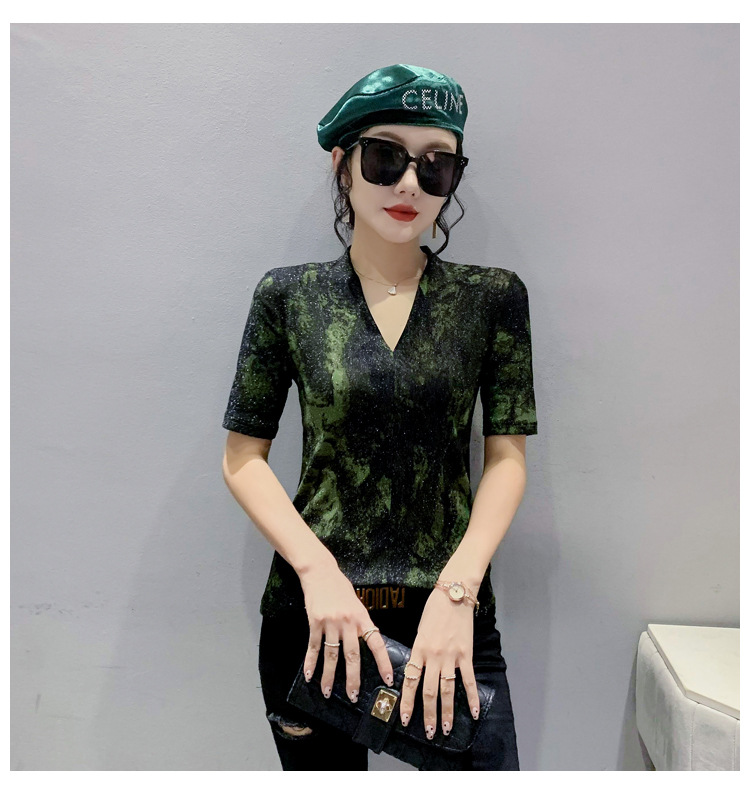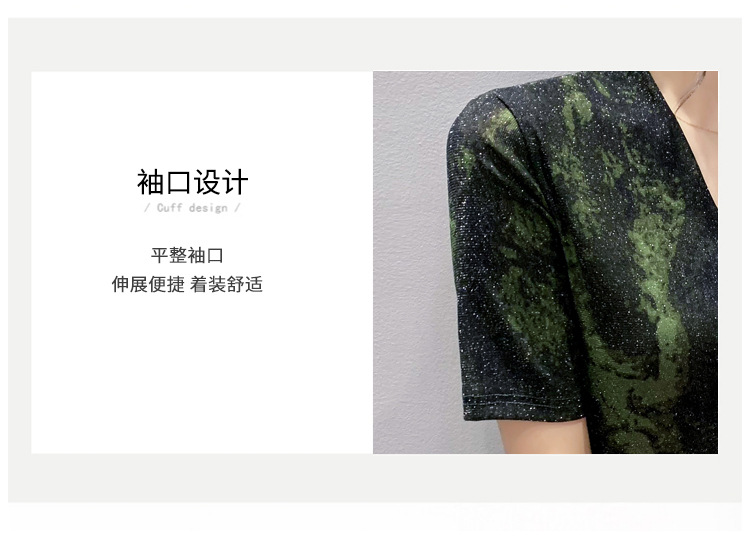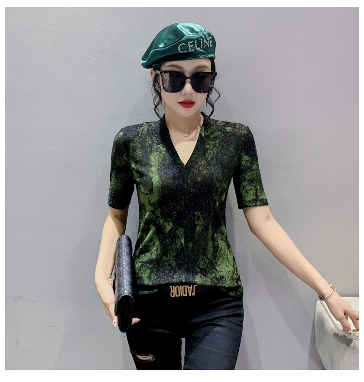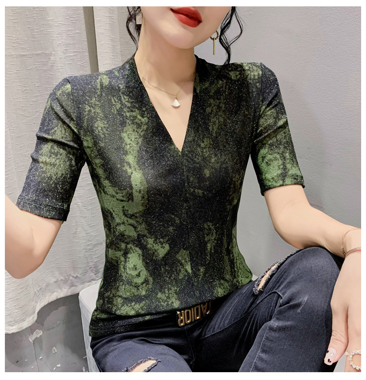 2022新款夏款洋气小衫,时髦v领亮丝网纱打底衫T恤 KQL9991