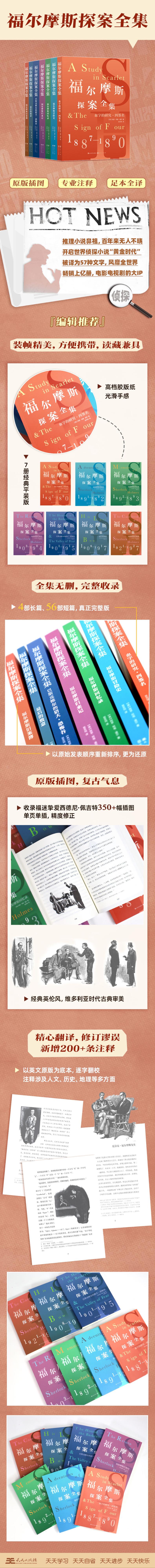 《福尔摩斯探案集》是英国作家阿瑟·柯南·道尔写的侦探故事集,在故事中描述了主要人物歇洛克·福尔摩斯的家庭和个人经历。福尔摩斯在助手华生的帮助下,透过蛛丝马迹,利用缜密的推理思考,破解了一个又一个神秘的案件。《福尔摩斯探案集》可谓是开辟了侦探小说历史“黄金时代”,一百多年来被译成57种文字,风靡全世界,是历*受读者推崇的侦探小说。小说中的福尔摩斯已成为世界上家喻户晓的人物,福尔摩斯的人物性格和形象被塑造的生动、饱满,能让读者读完全书之后相信这个人物是真实存在的。作品合乎逻辑的推理引人入胜,情节跌宕起伏,人物形象生动鲜明。对于其艺术成就,英国著名小说家毛姆曾说:“和柯南道尔所写的《福尔摩斯探案集》相比,没有任何侦探小说曾享有那么大的声誉。”柯南道尔被称为“英国侦探小说之父”,也是世界*畅销书作家之一。
