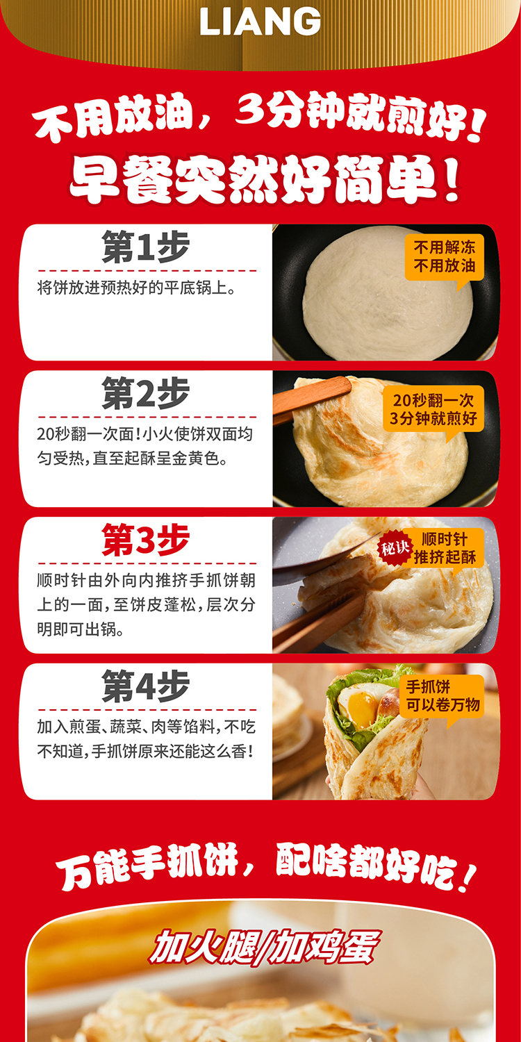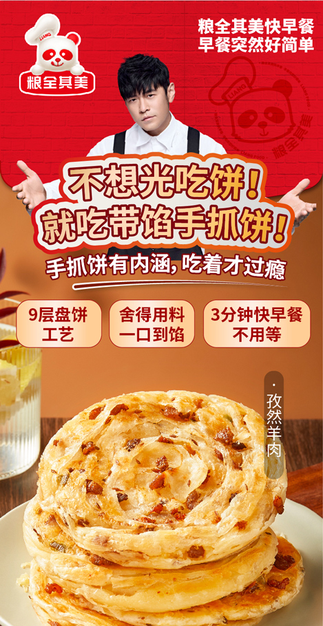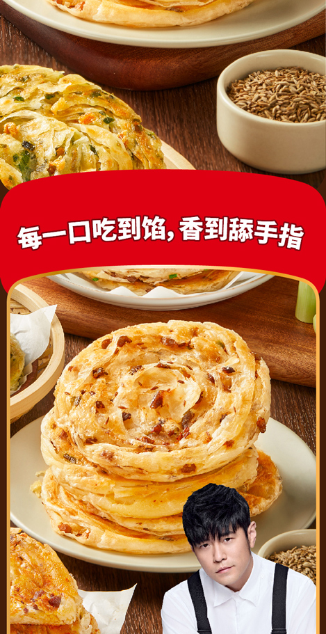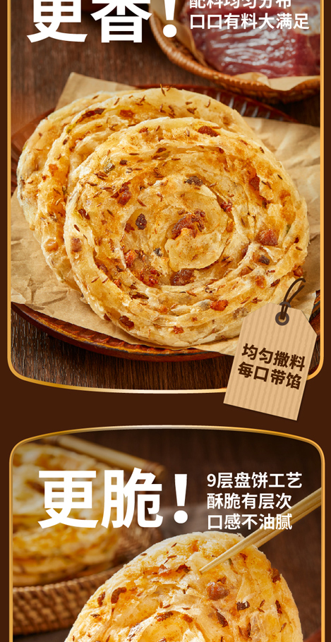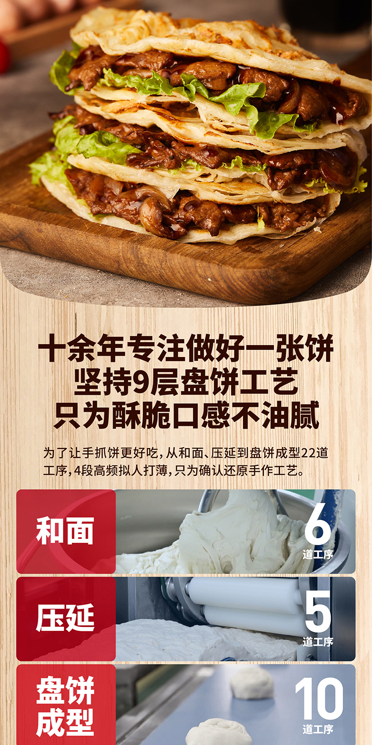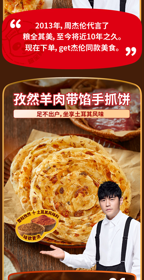 粮全其美6层酥手抓饼&孜然羊肉&猪肉韭菜手抓饼 千层百叠 金黄酥脆