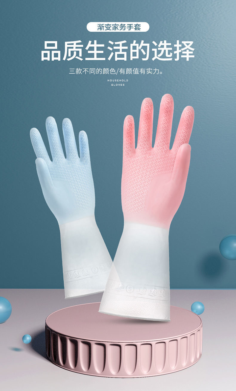 【醒粉专属福利9.9元/3双】耐用型橡胶手套 渐变色洗碗洗衣服打扫卫生渐变色手套