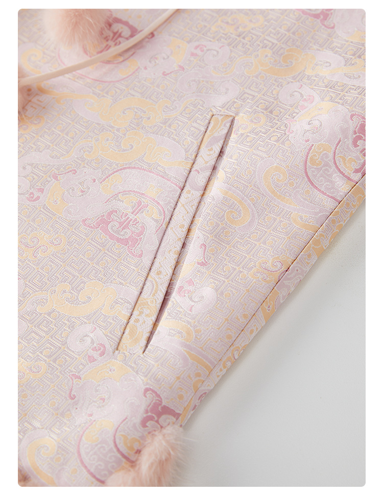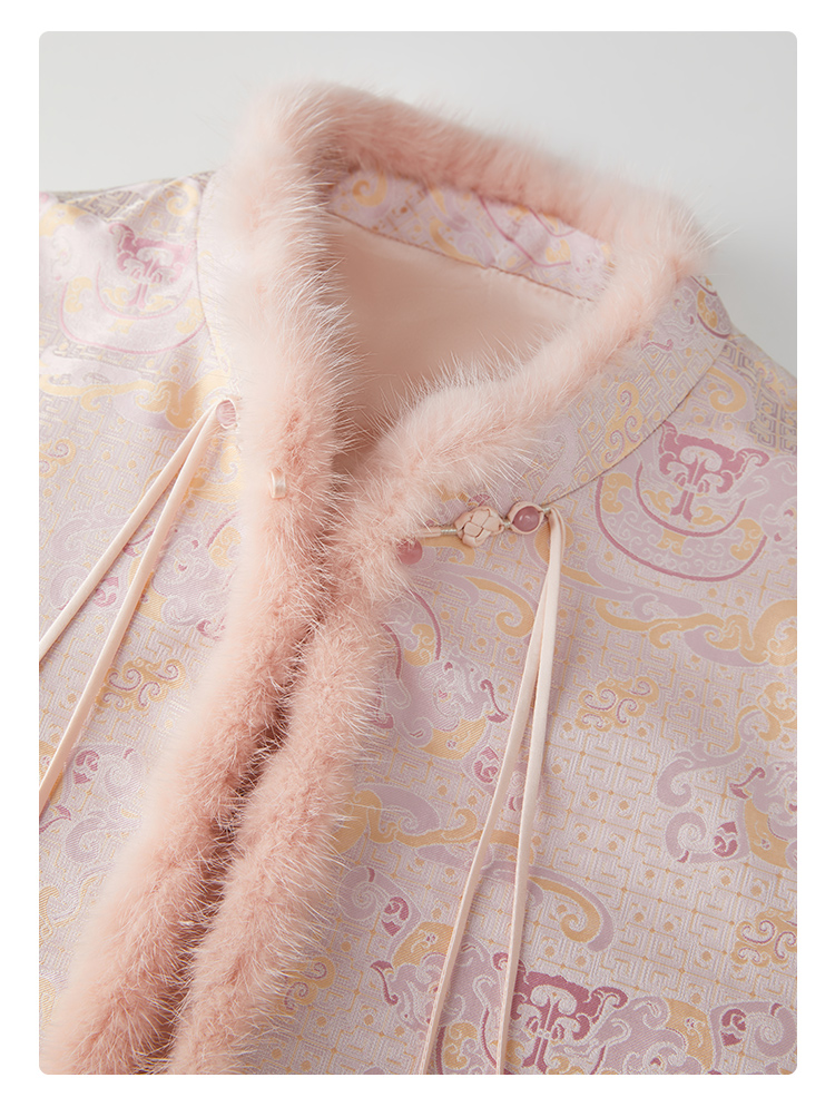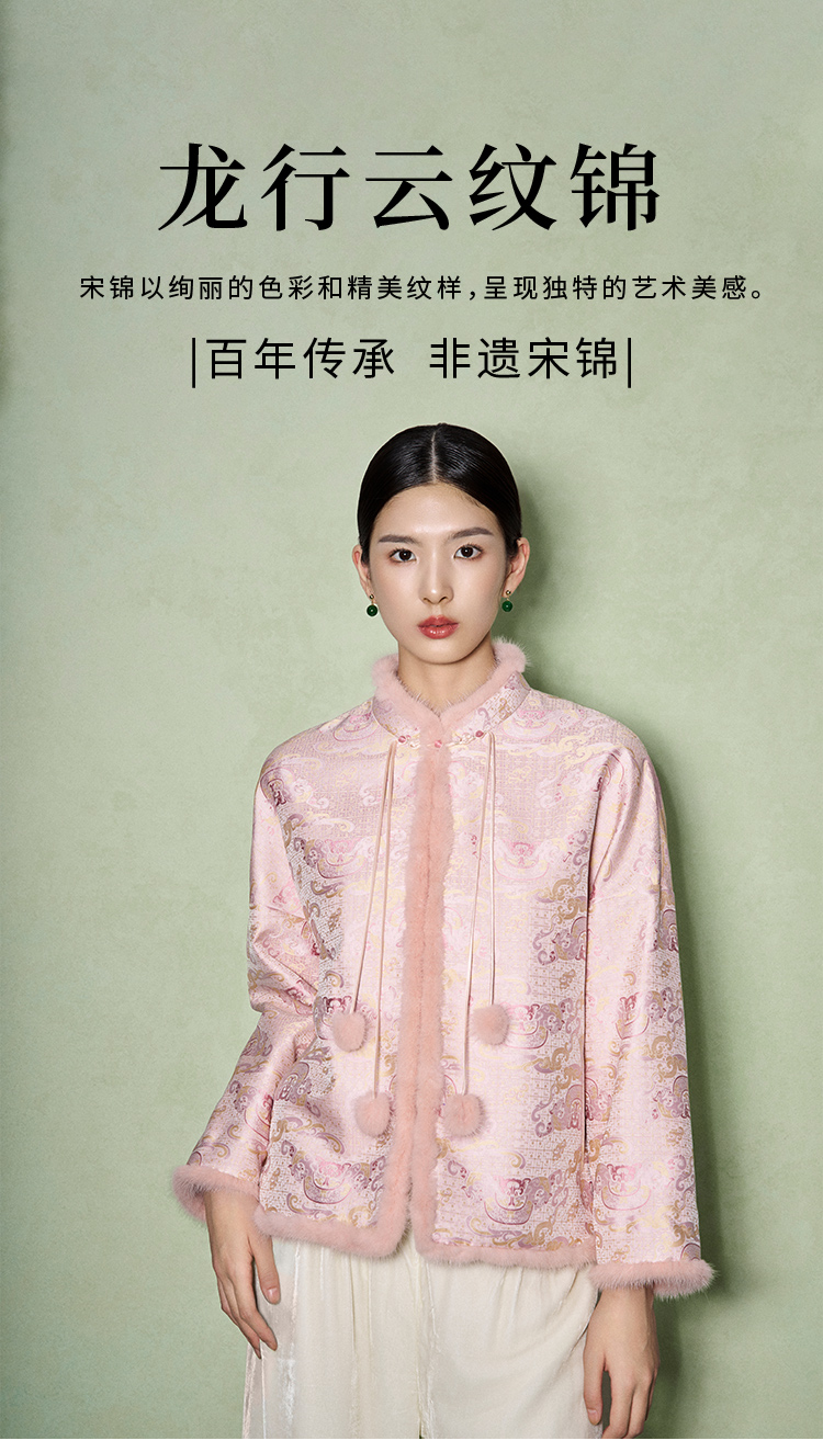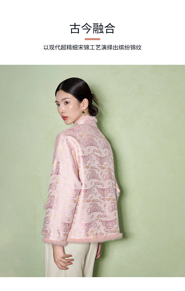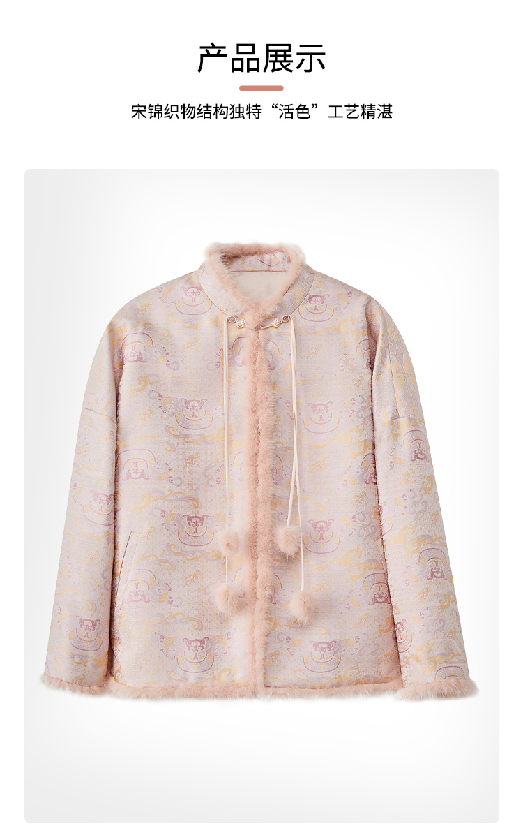 SAINTJOY/上久楷 女式宋锦貂绒丝棉外套 中式上衣 中国风 复古 龙行云纹锦 CY1024207011