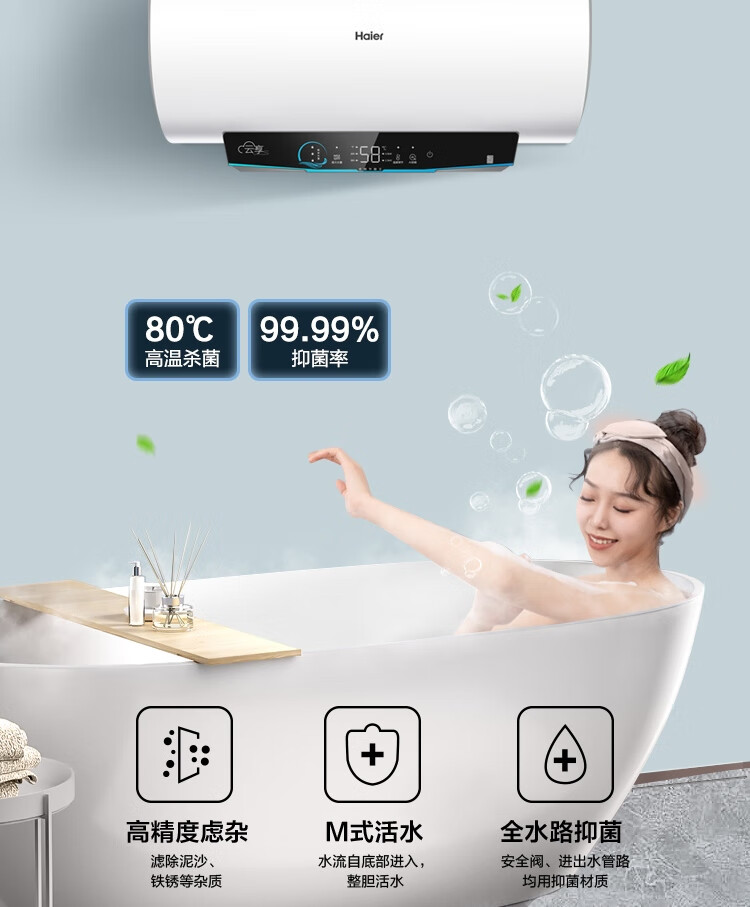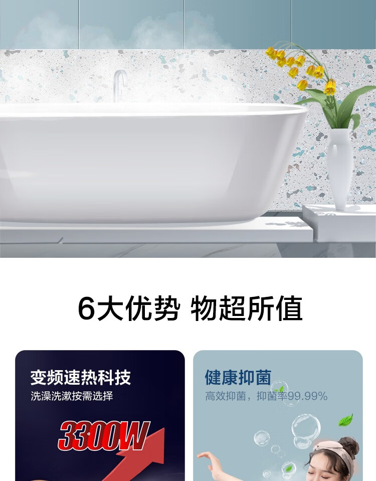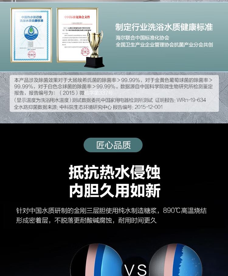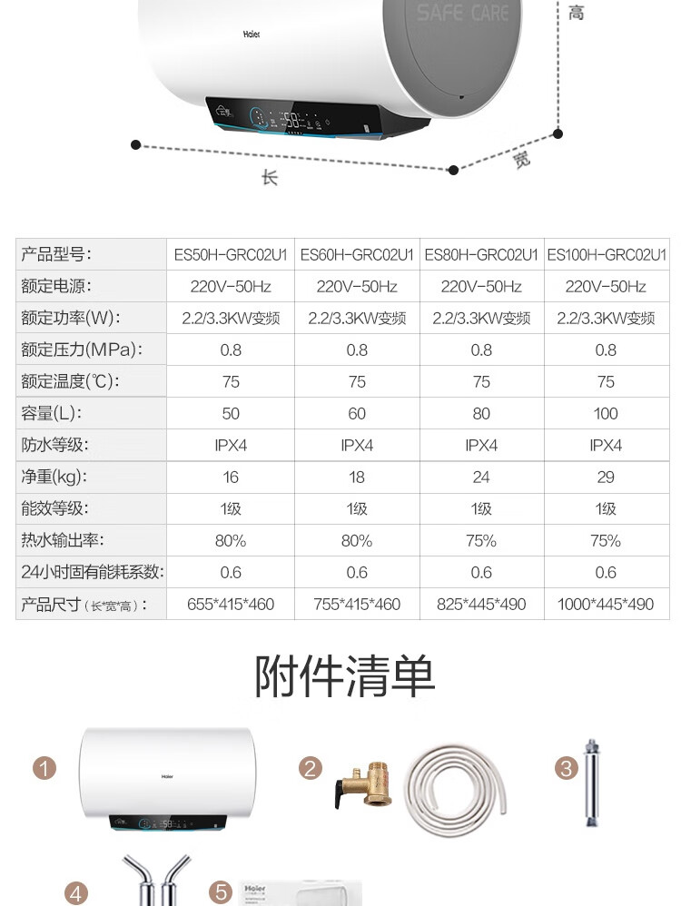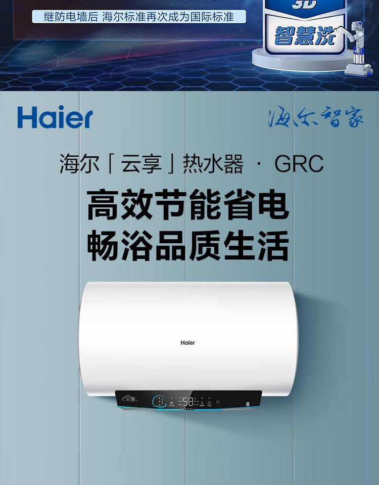 海尔(Haier)100升电热水器 家用储水式3300W变频节能一级能效金刚三层胆厨房卫生间洗澡用水上门安装GRC