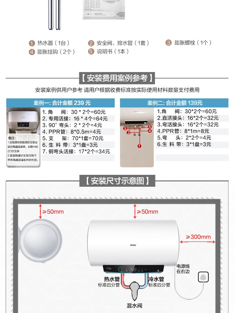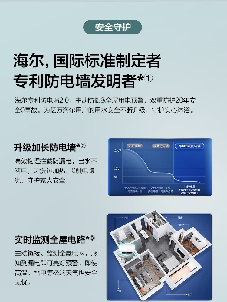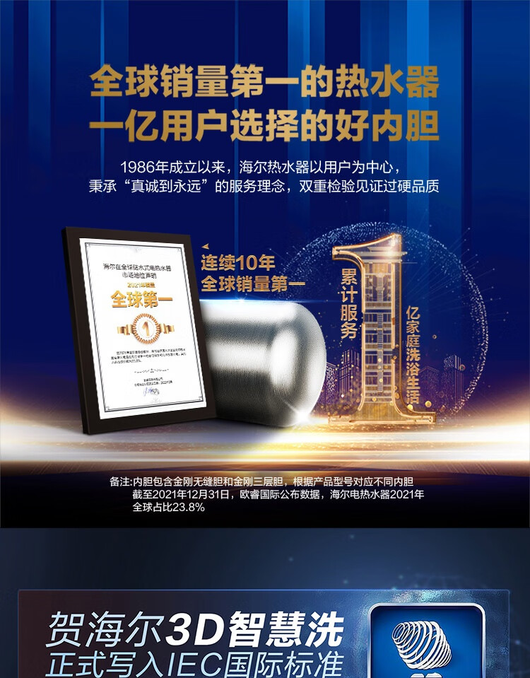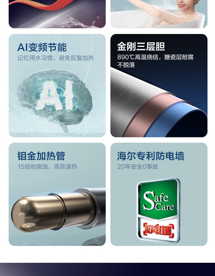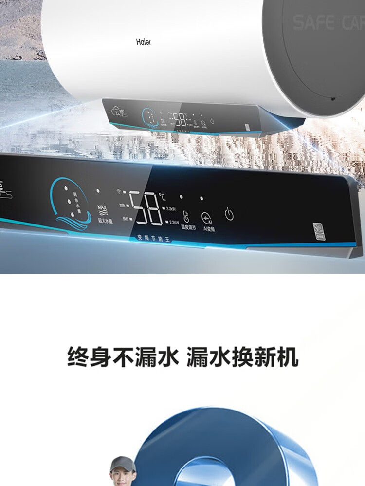 海尔(Haier)100升电热水器 家用储水式3300W变频节能一级能效金刚三层胆厨房卫生间洗澡用水上门安装GRC