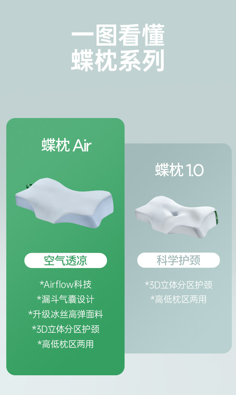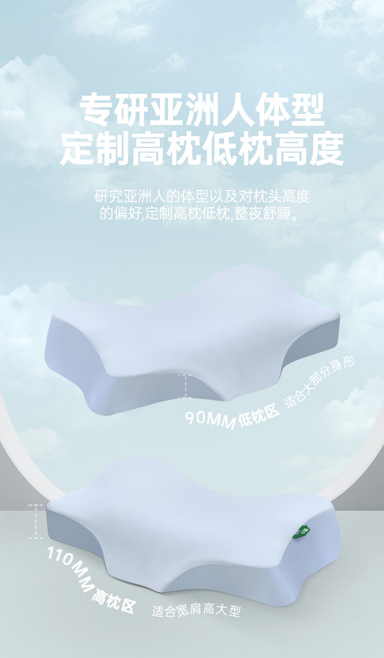 七西7C记忆枕成人无压枕枕头深度睡眠护颈枕头 蝶枕Air(蓝色/粉色/紫色,下单备注颜色)