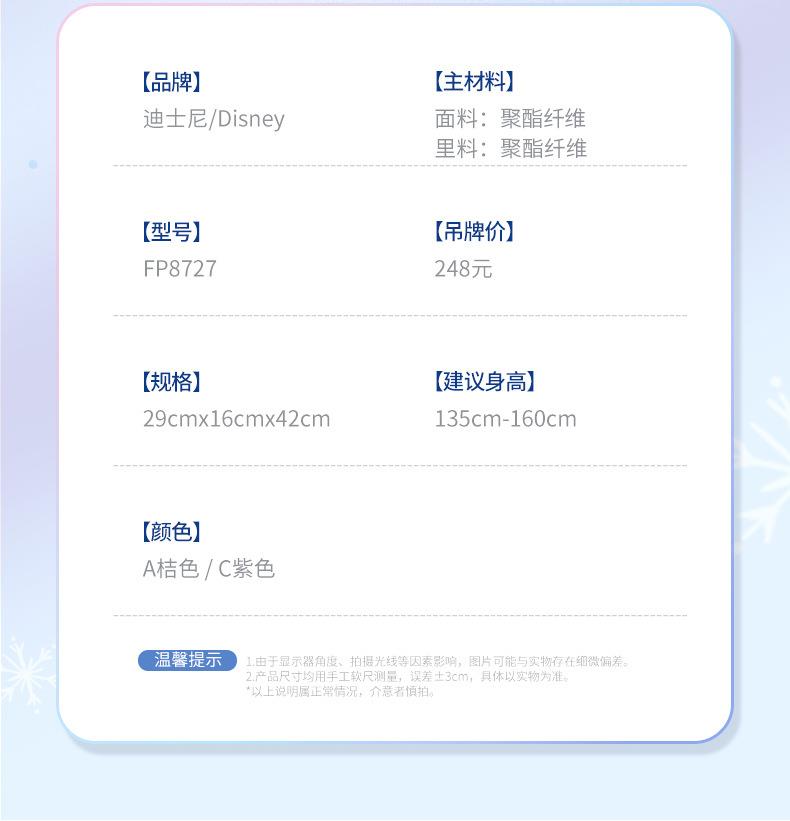 迪士尼小学书包1-3年级大容量减负儿童双肩背包简约可爱女孩背包