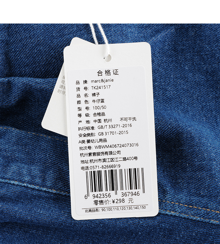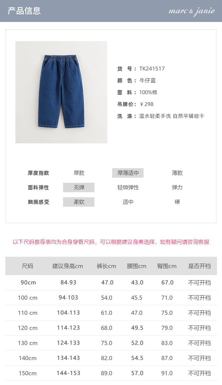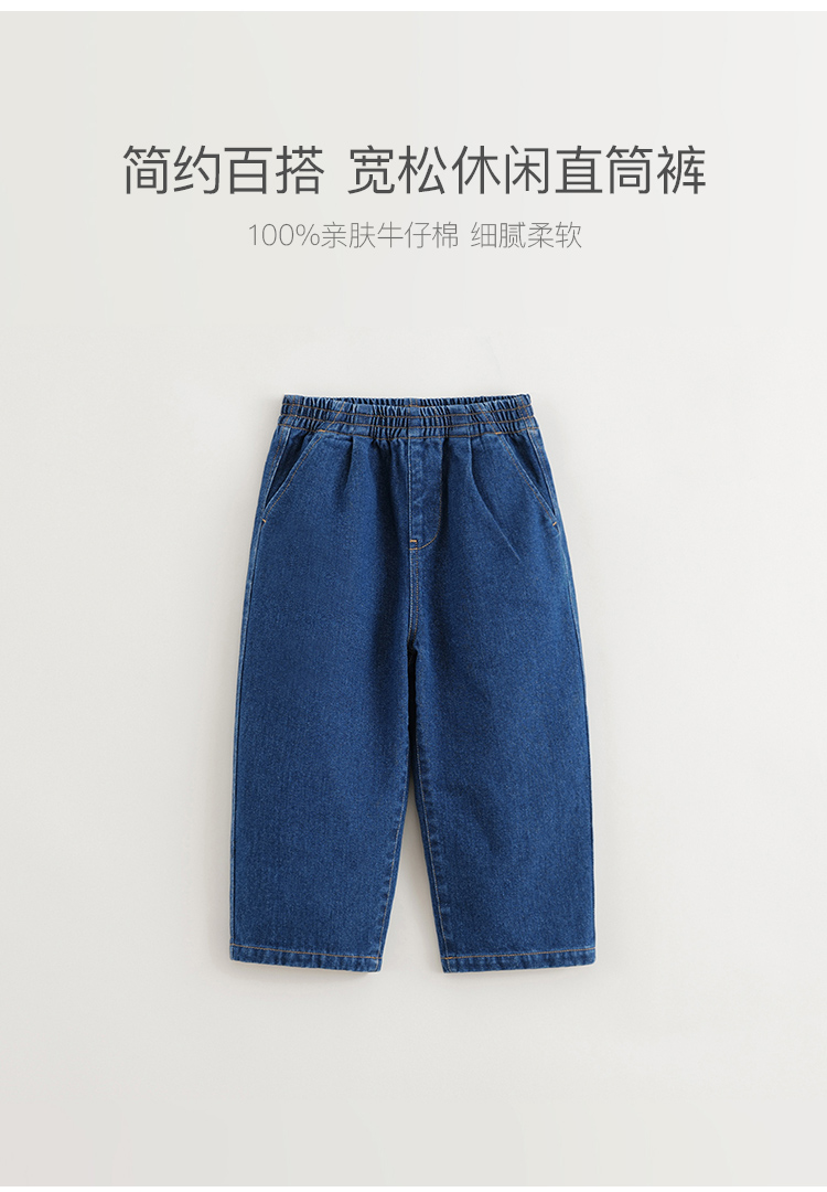 马克珍妮男女童纯棉宽松直筒牛仔裤 儿童裤子童装春秋款241517