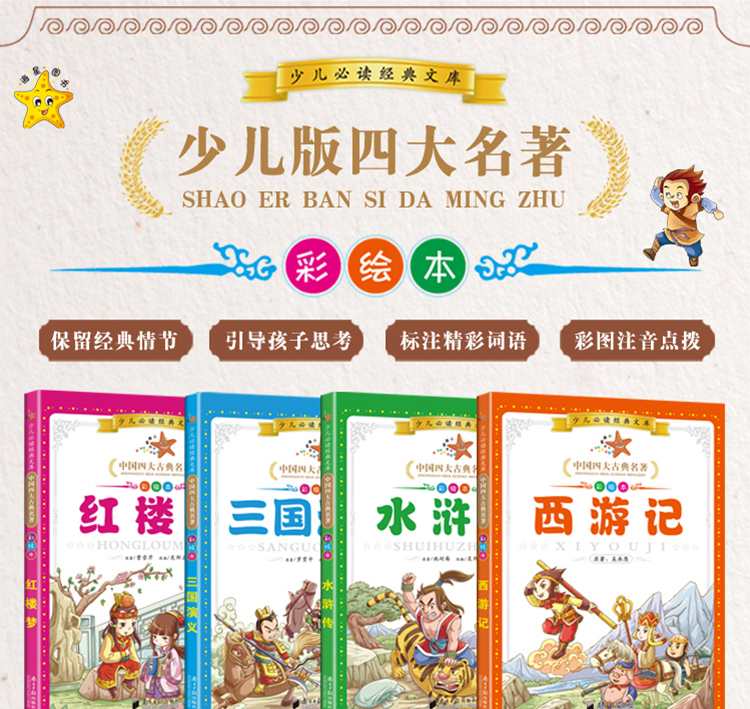B179-【6-12岁】《中国四大古典名著》彩绘注音本(全4册)少儿必读经典文库