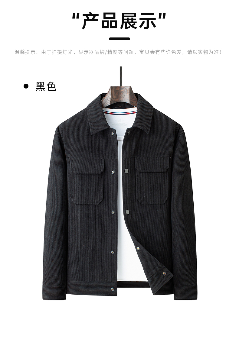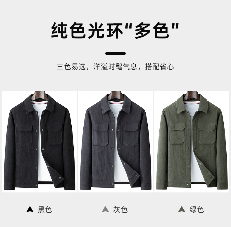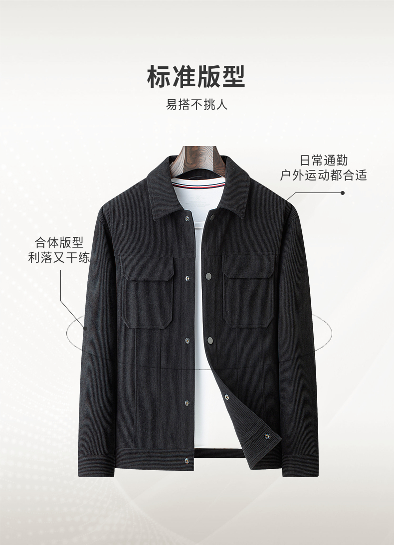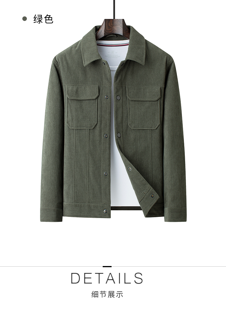 【灯芯绒】圣得西男士翻领工装口袋夹克2024春季新款百搭休闲茄克