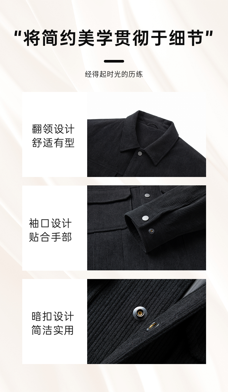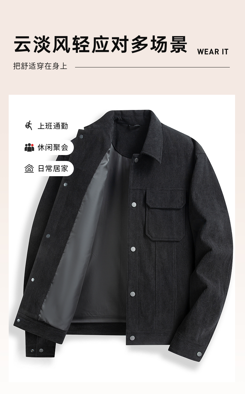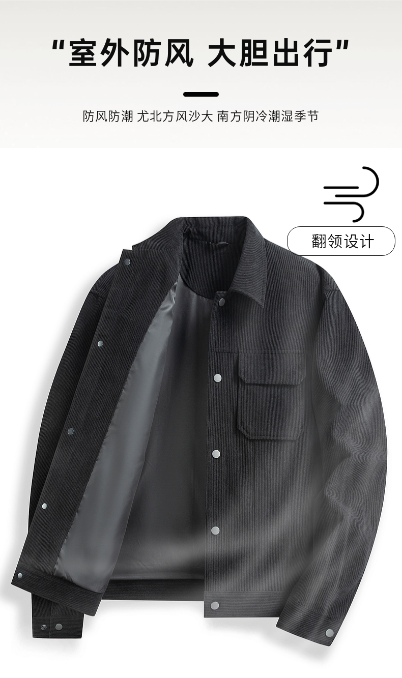 【灯芯绒】圣得西男士翻领工装口袋夹克2024春季新款百搭休闲茄克