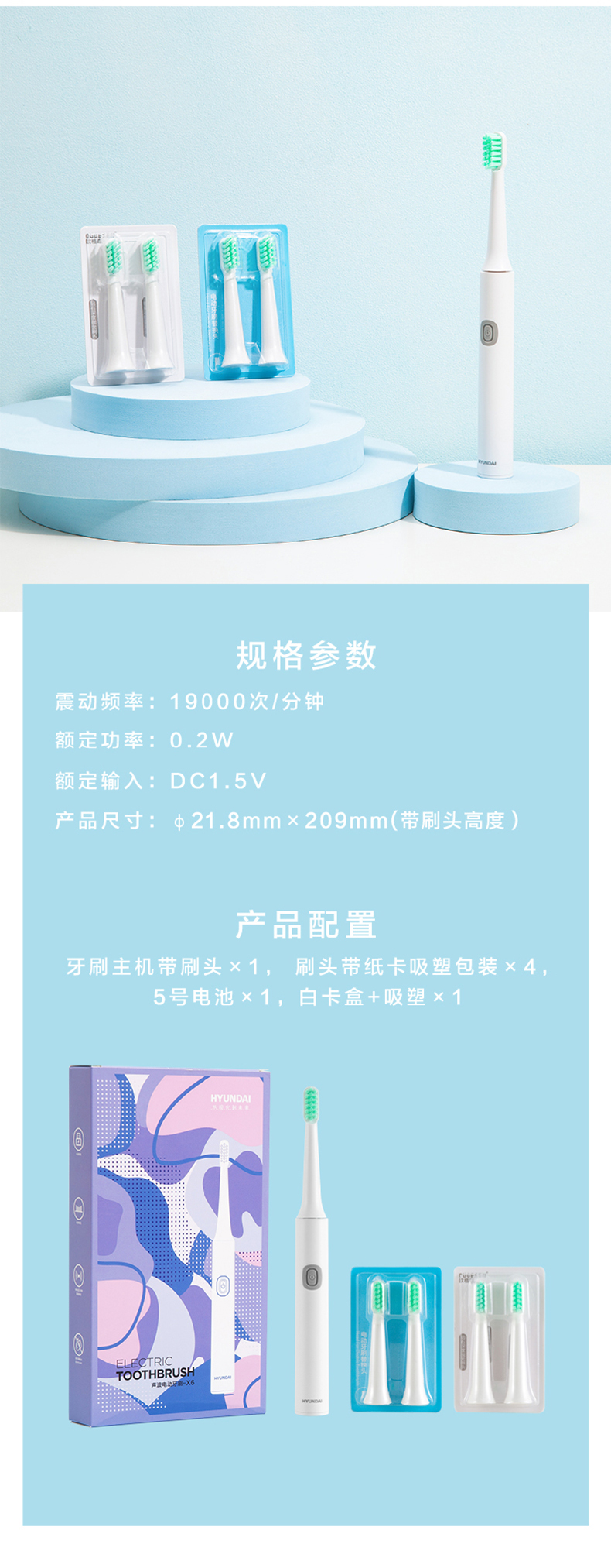 HYUNDAI电动牙刷(配5个头)X6