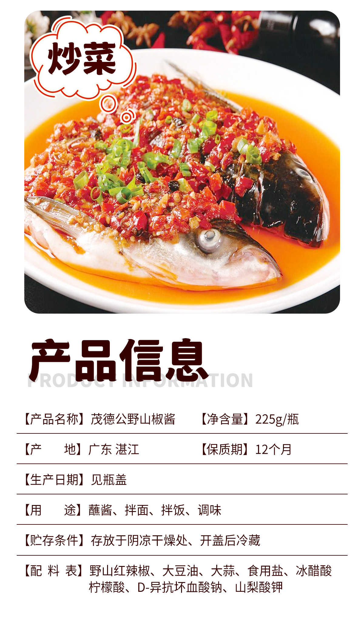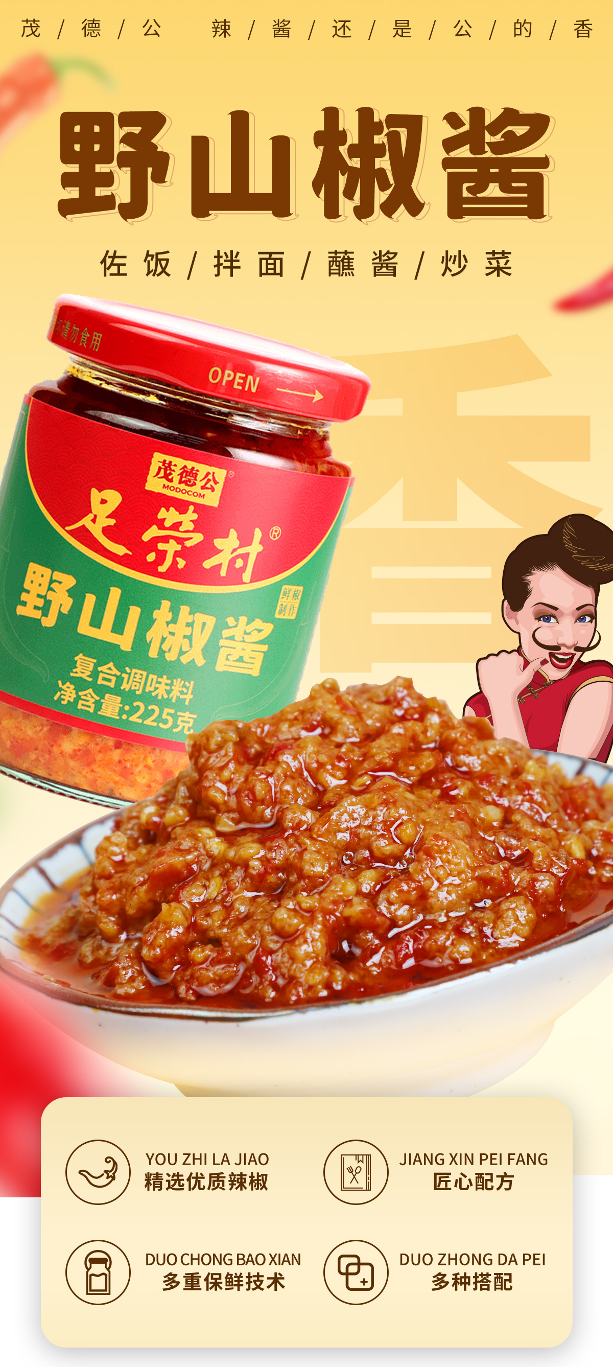茂德公足荣村野山椒225g辣椒酱下饭菜拌饭酱拌面酱厨房调味酱