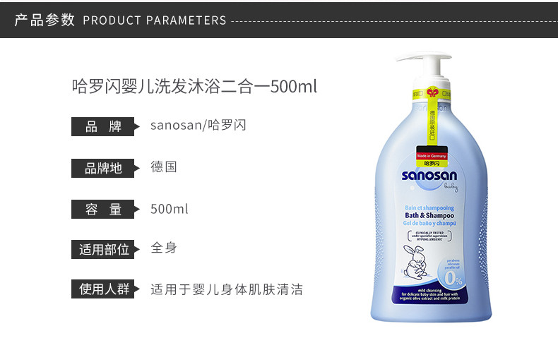 SANOSAN/哈罗闪 婴儿二合一沐浴洗发露 500MLJPY带授权招加盟代理