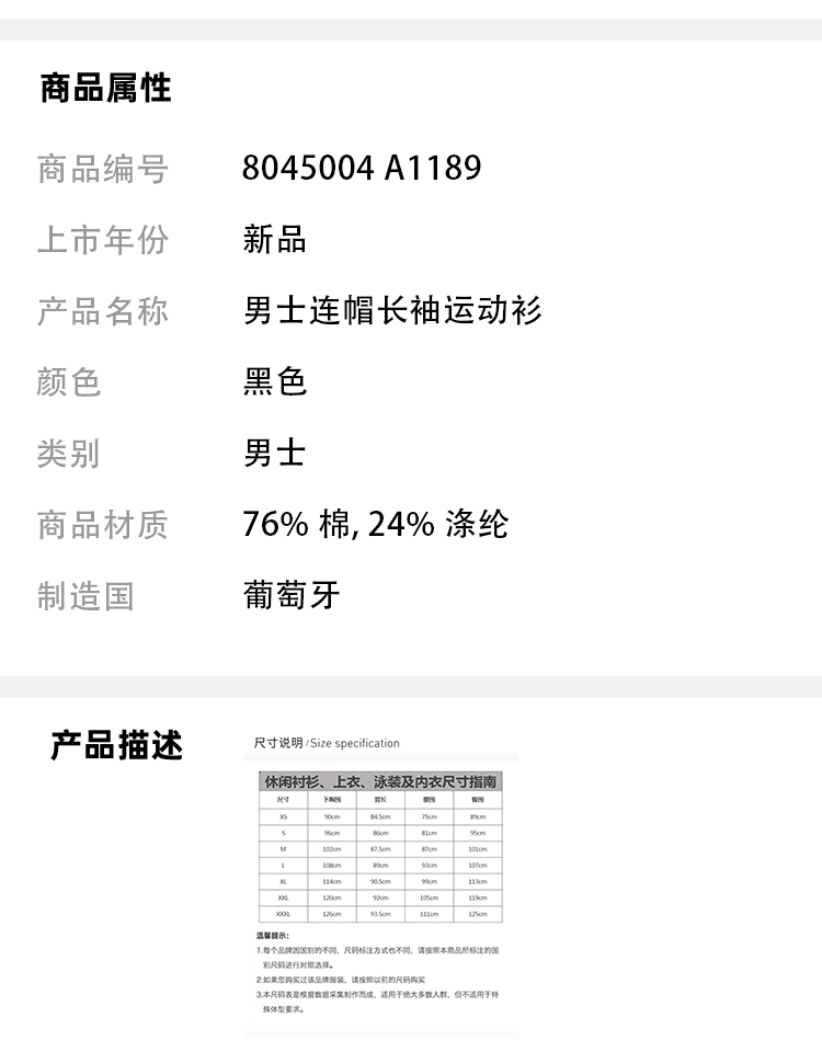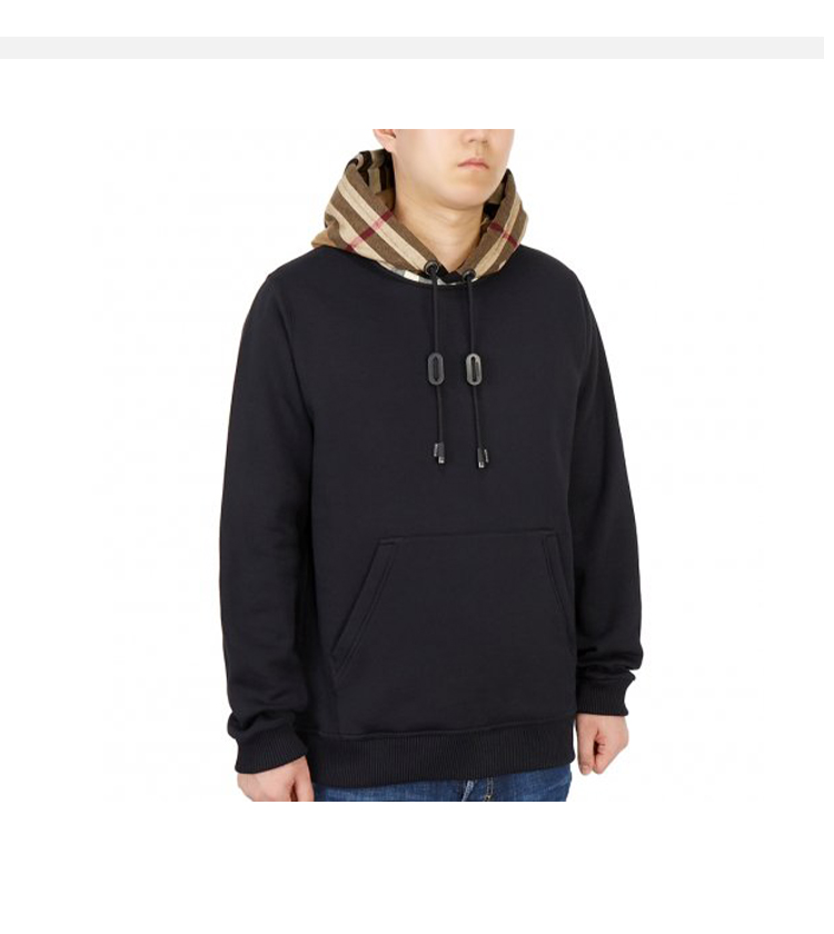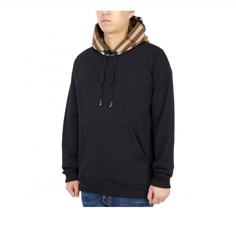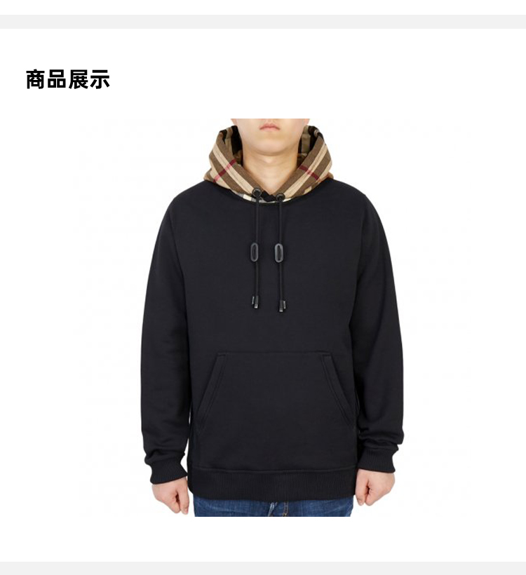 【二】BURBERRY 博柏利 格纹棉质混纺连帽衫 男士卫衣 黑色 8045004 A1189