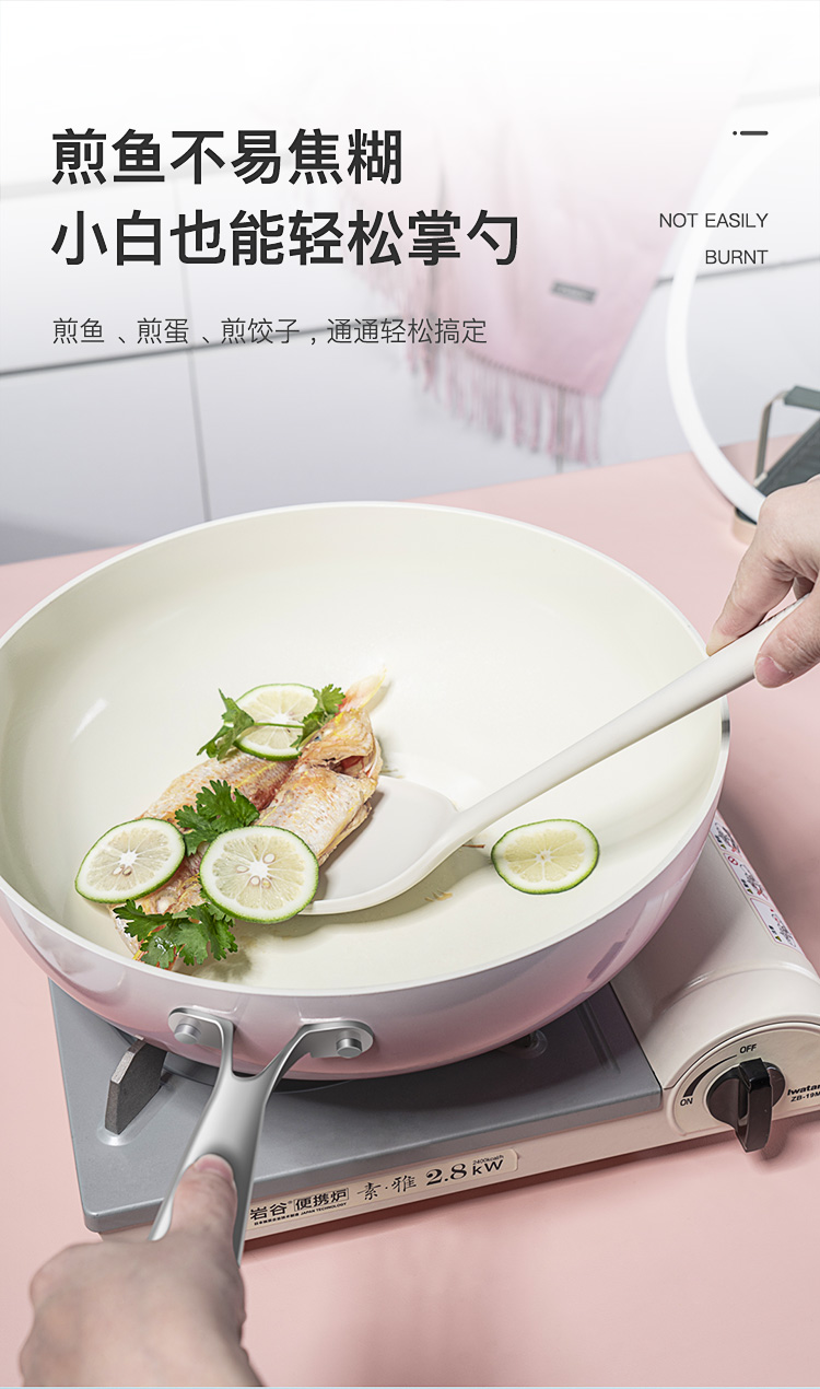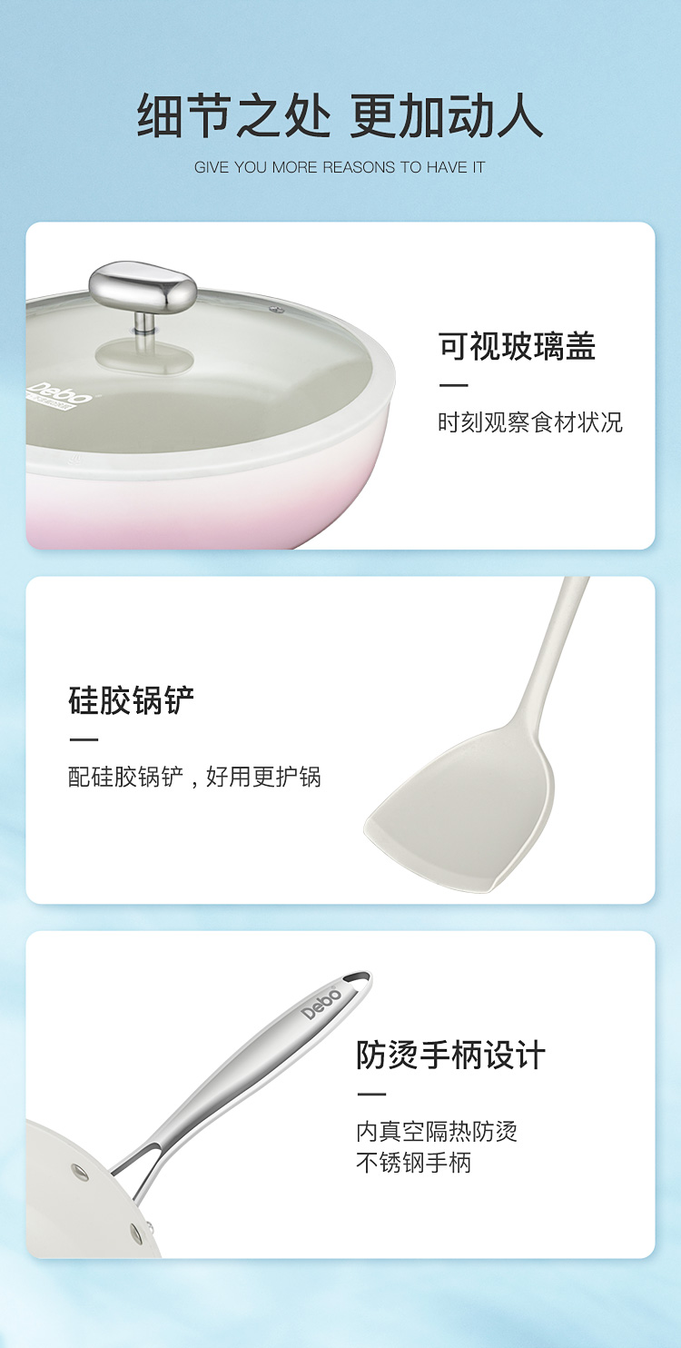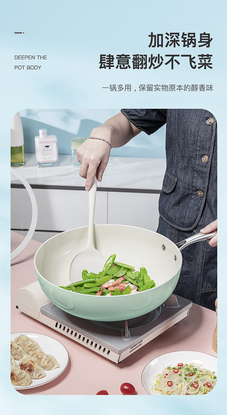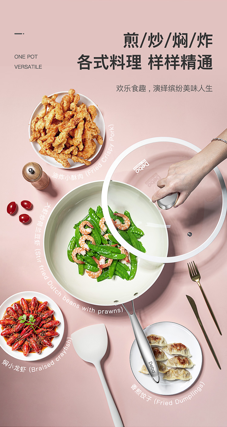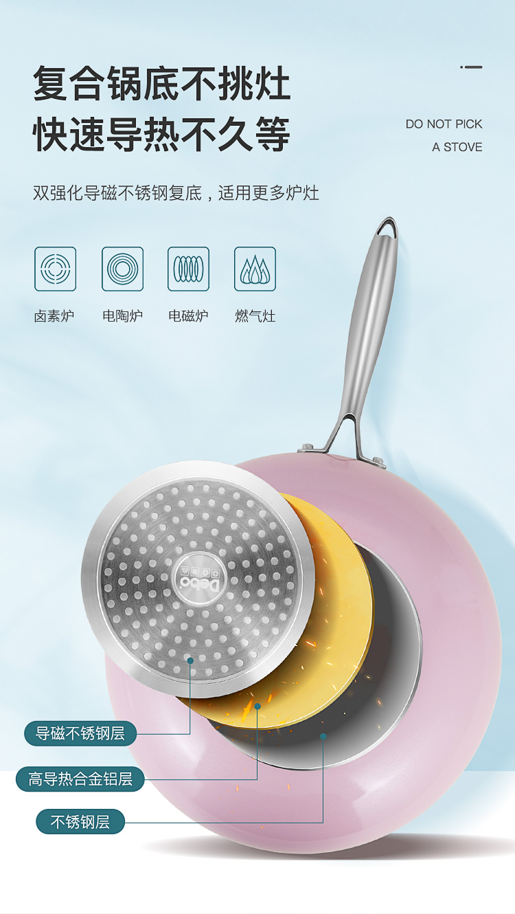 Debo德铂0氟钛盾不粘炒锅无涂层少油烟平底炒菜锅电磁炉燃气通用