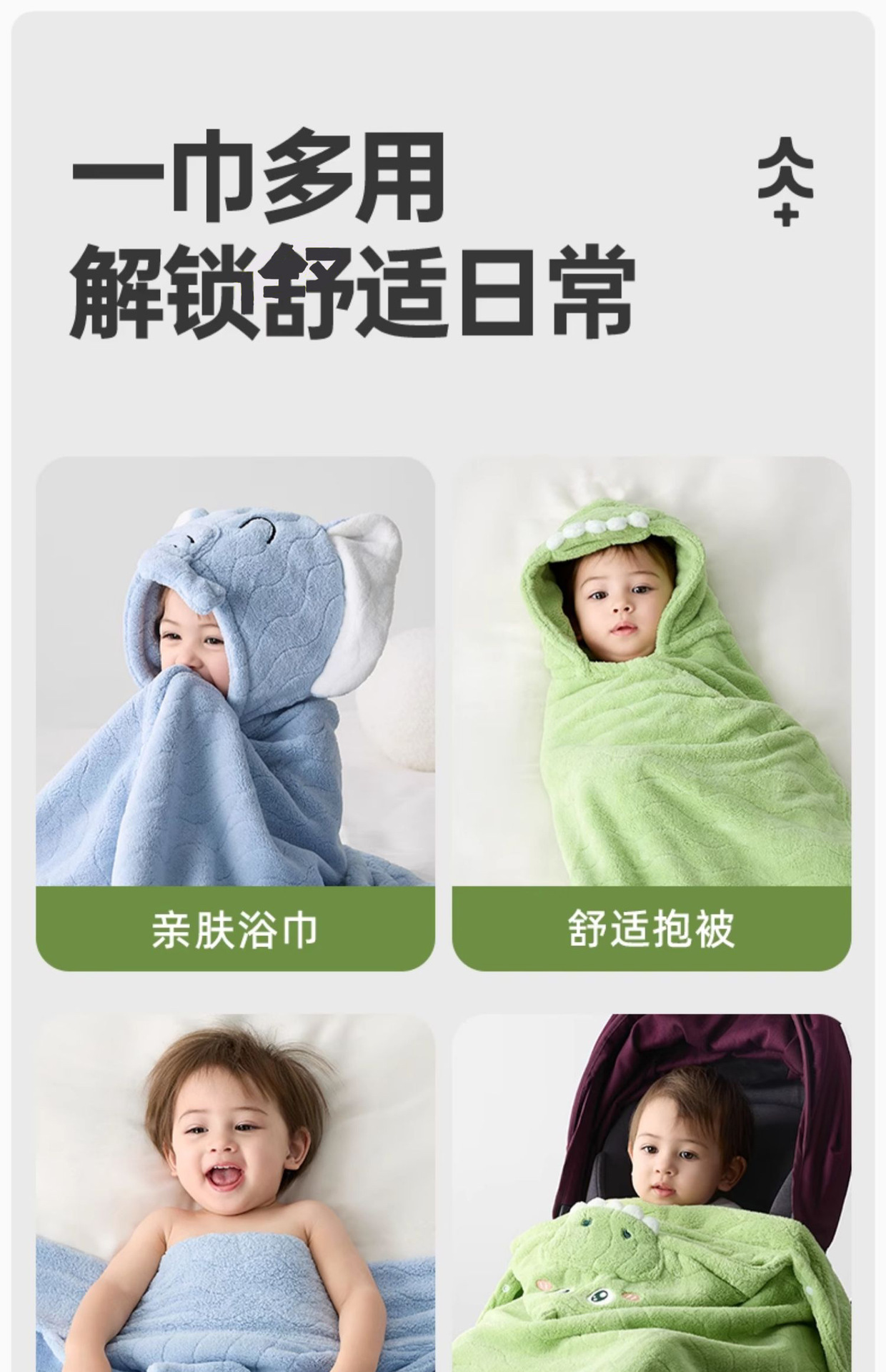 【儿童浴袍¥24.8】儿童浴巾男孩女孩可穿新生婴儿洗澡速干吸水斗篷宝宝带帽浴袍裹巾