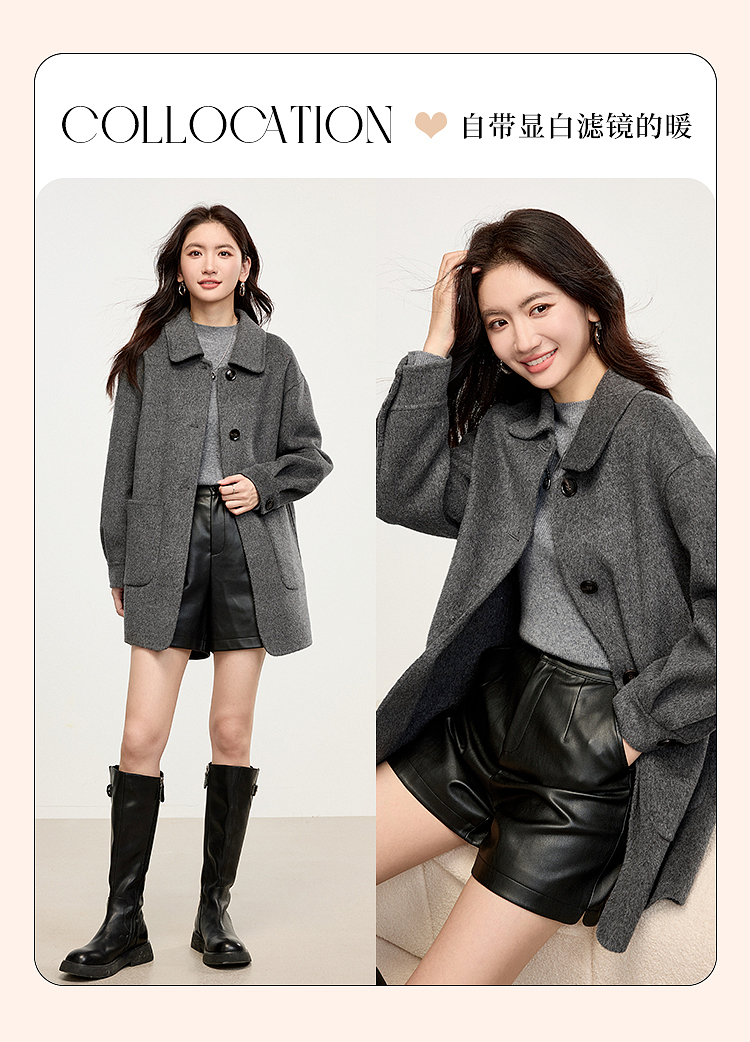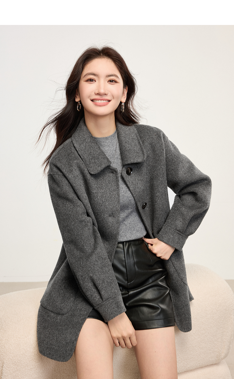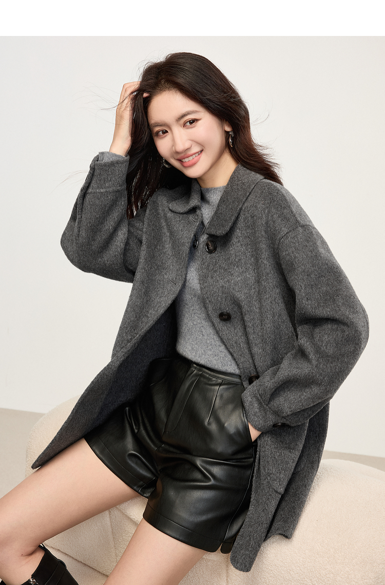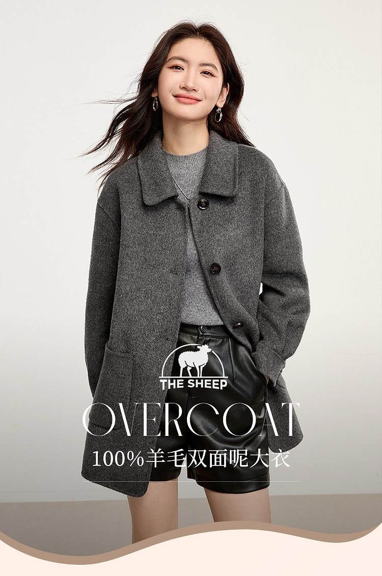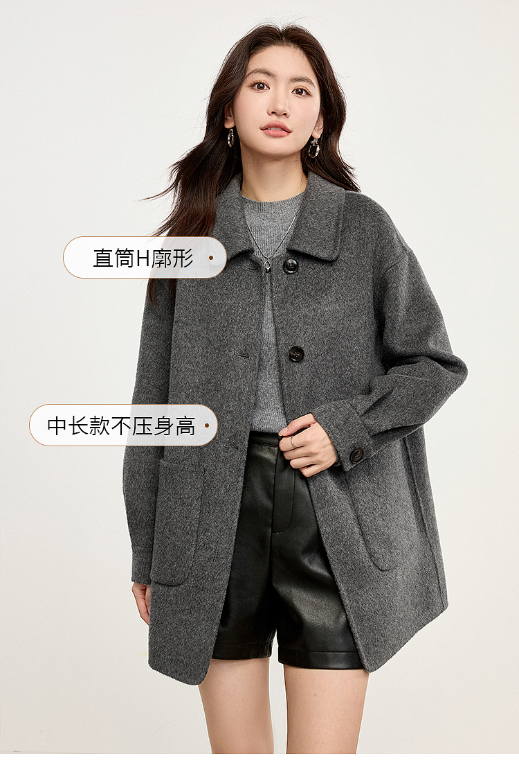 【专属特价】熙世界80支全羊毛大衣女中长款冬季新款极简风双面呢羊绒毛呢外套