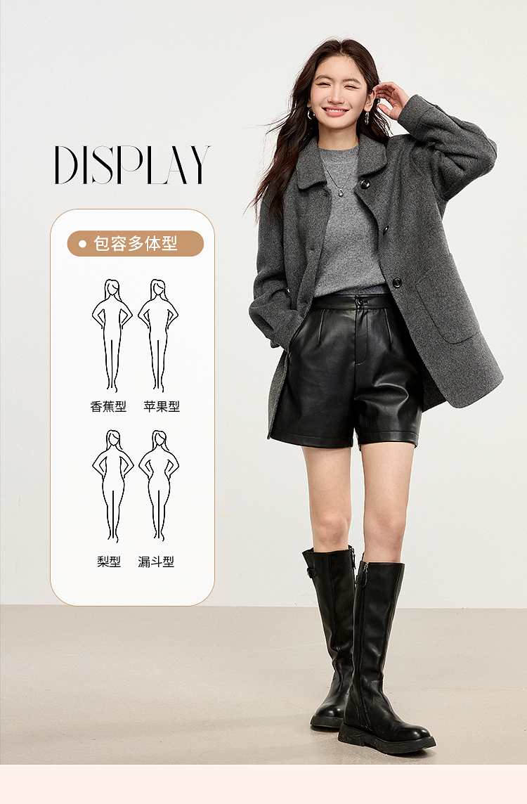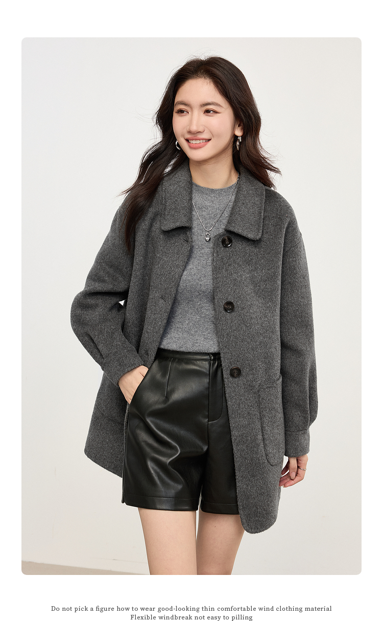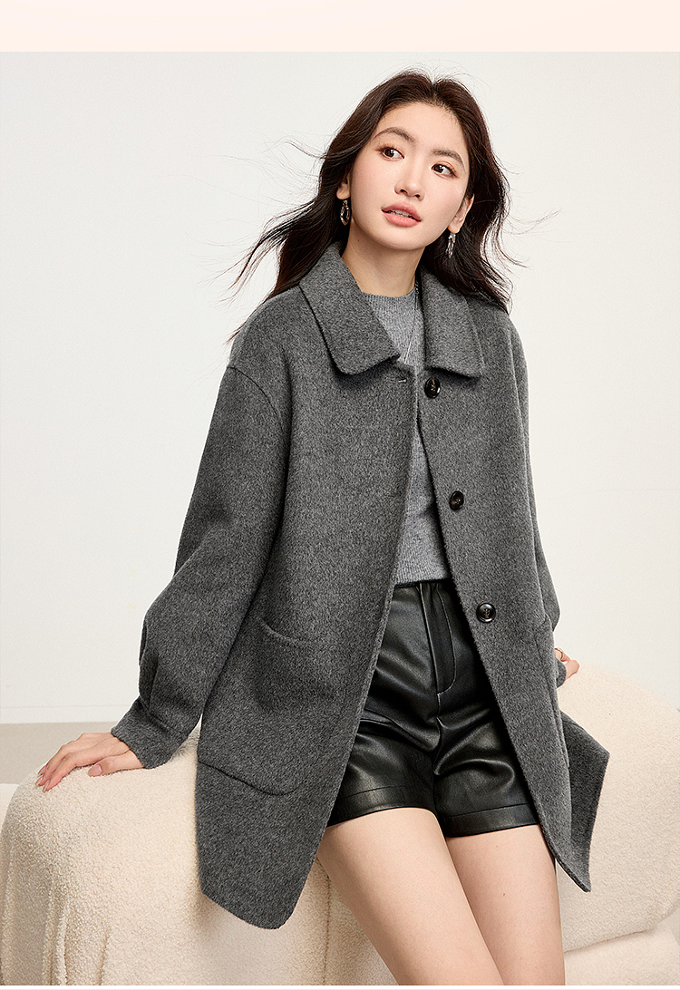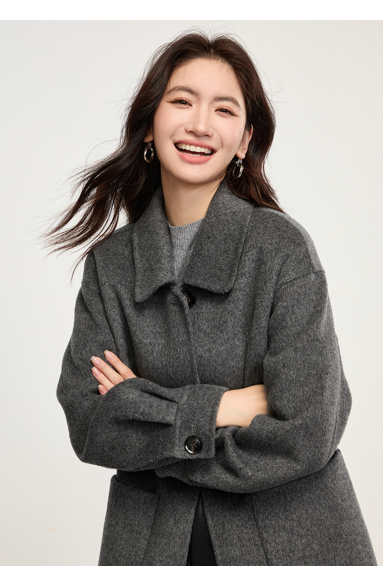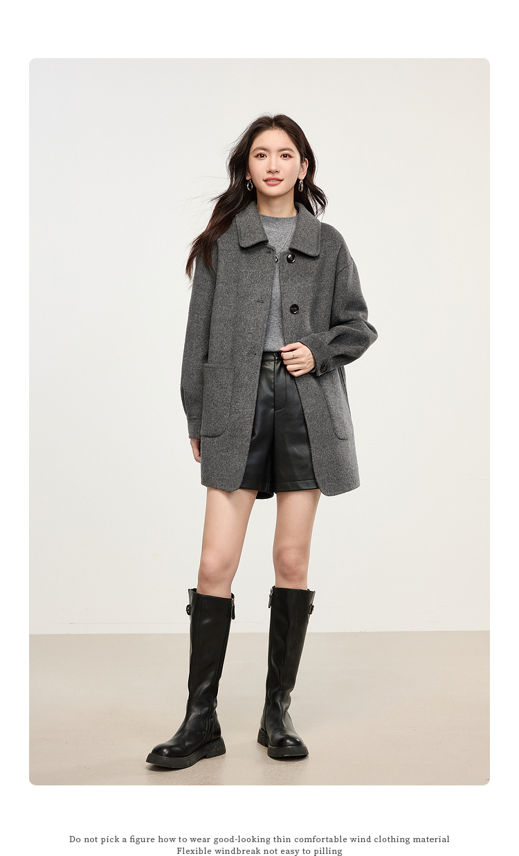 【专属特价】熙世界80支全羊毛大衣女中长款冬季新款极简风双面呢羊绒毛呢外套