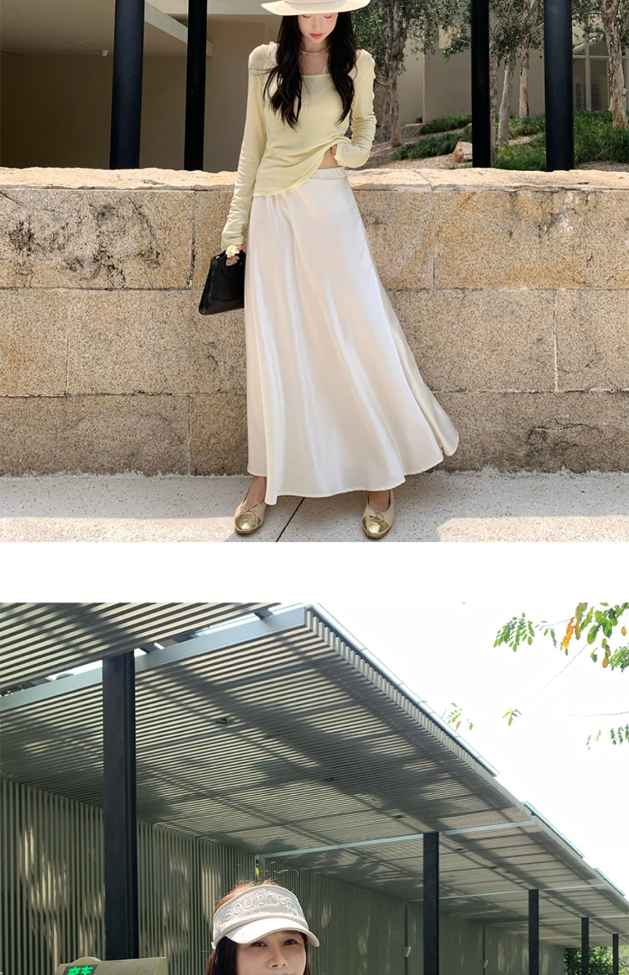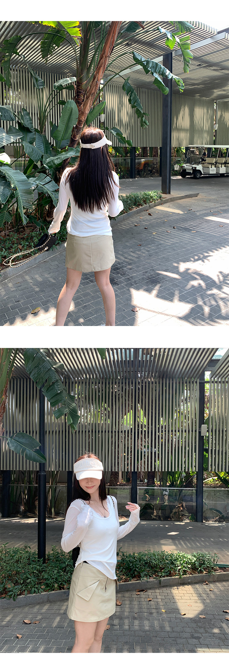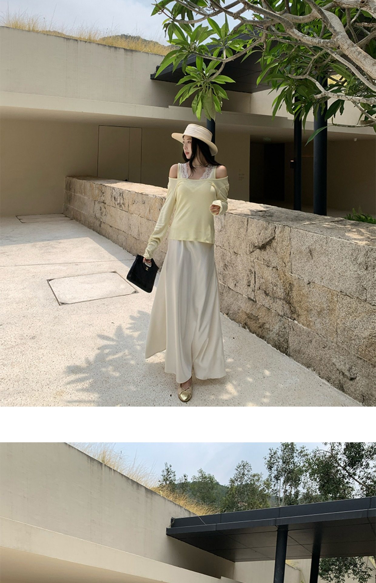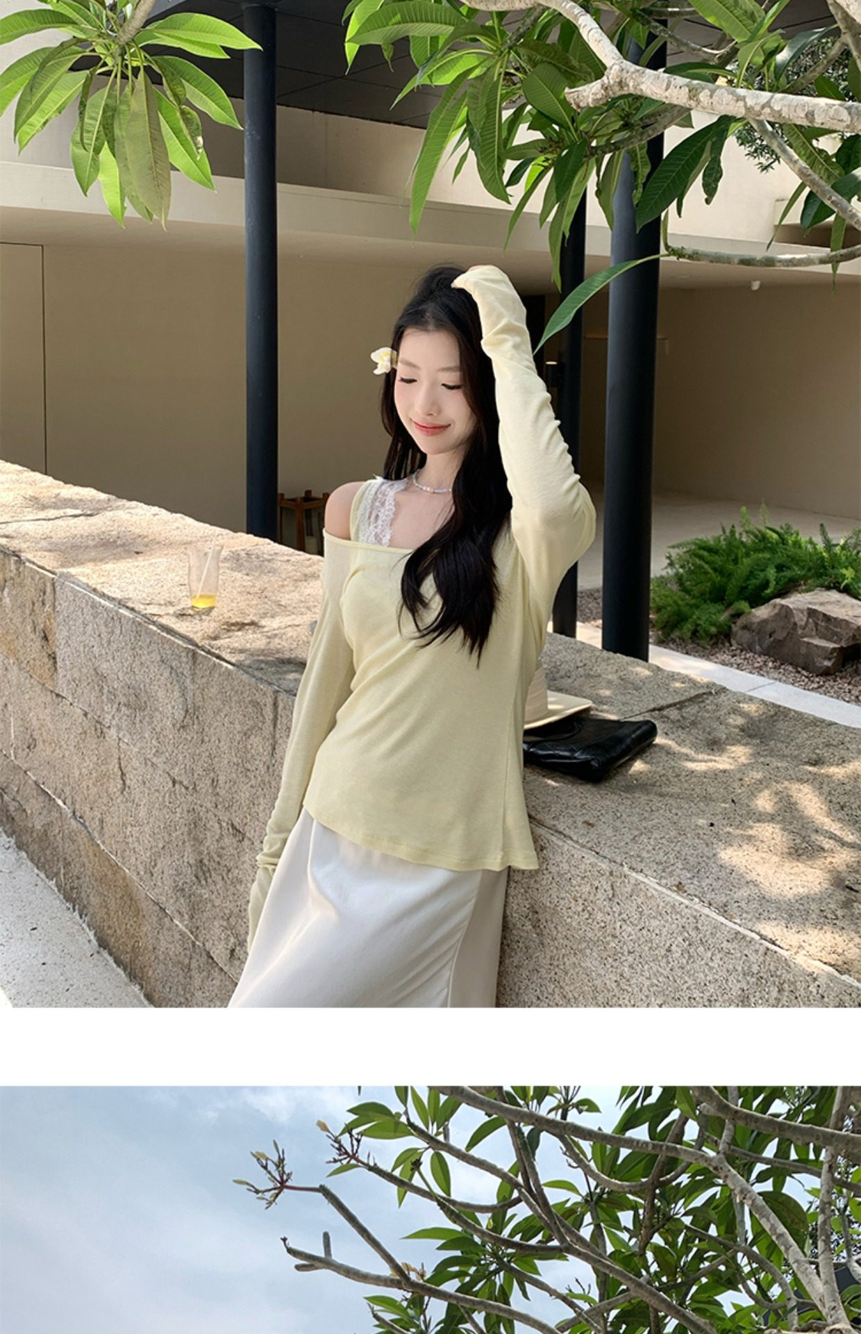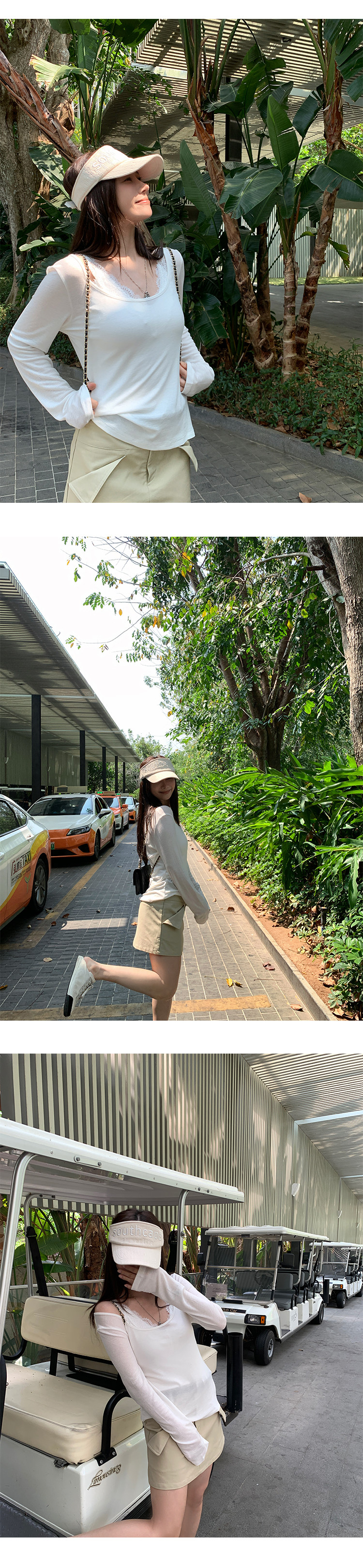 EKOOL衣库天丝羊毛圆领长袖T恤女夏季新款蕾丝花边吊带背心两件套