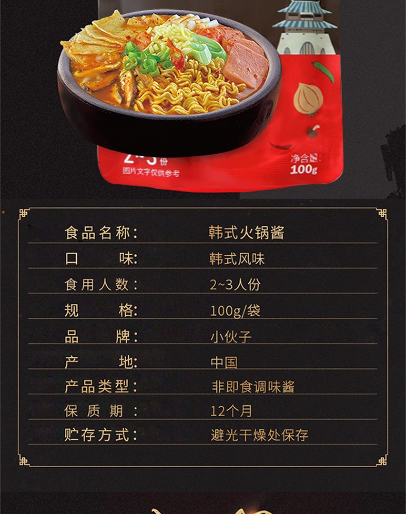 小伙子韩式火锅酱100g 韩式火锅专用酱韩式火锅底料调味酱