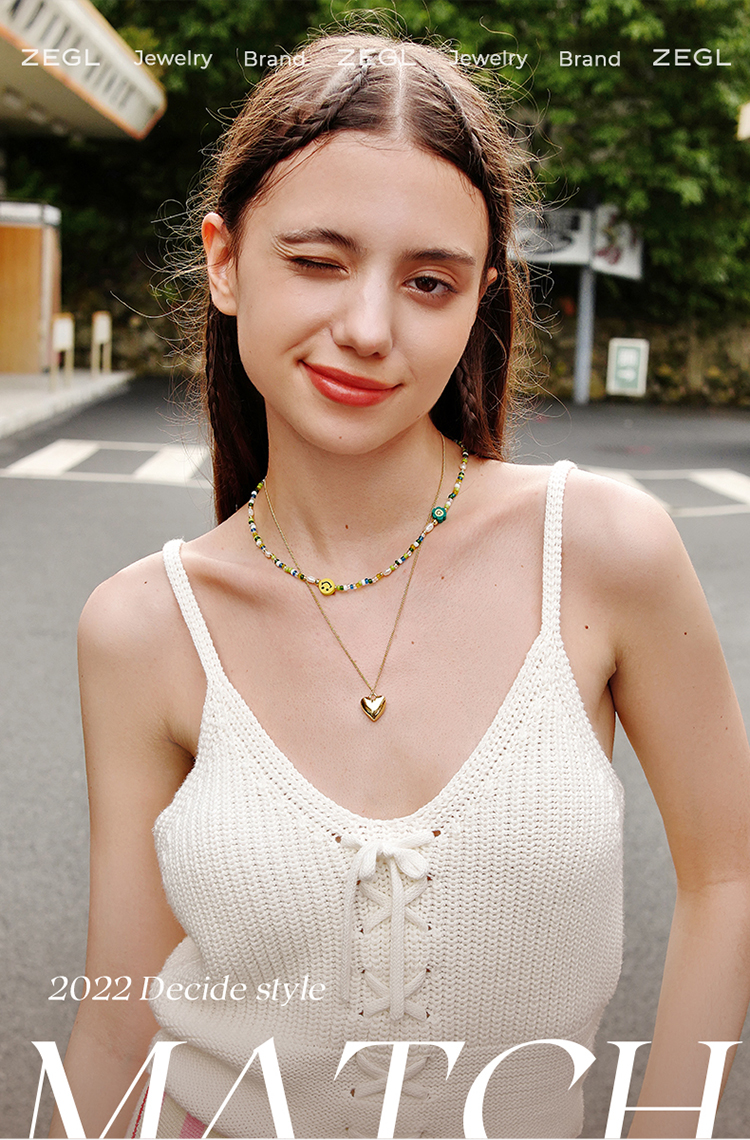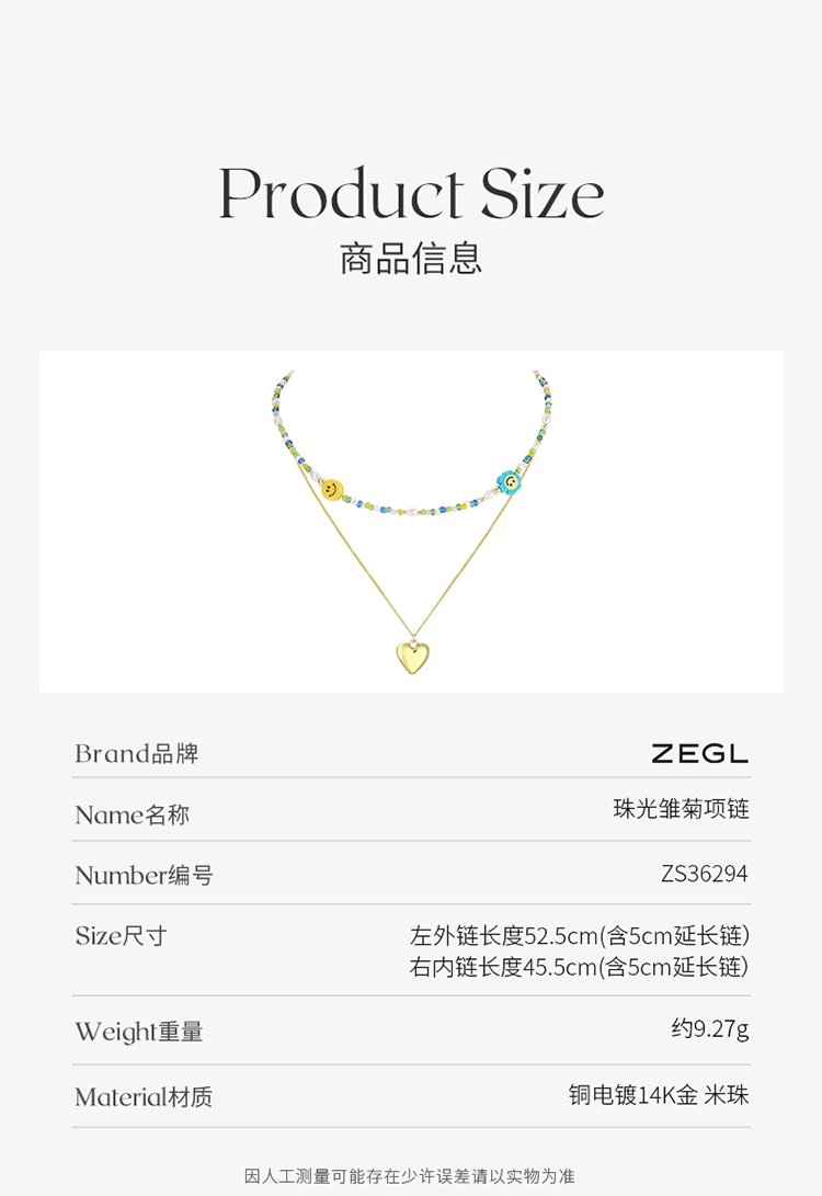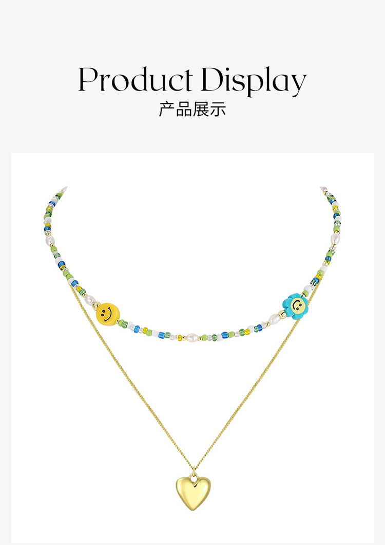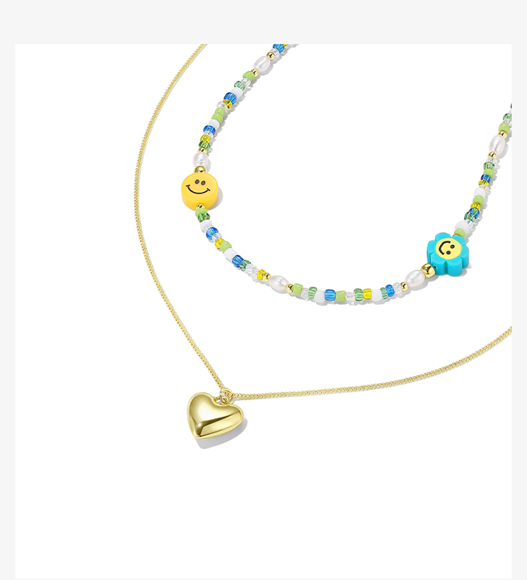 ZEGL彩色笑脸串珠项链女2022年新款潮人造珍珠叠戴微笑爱心锁骨链