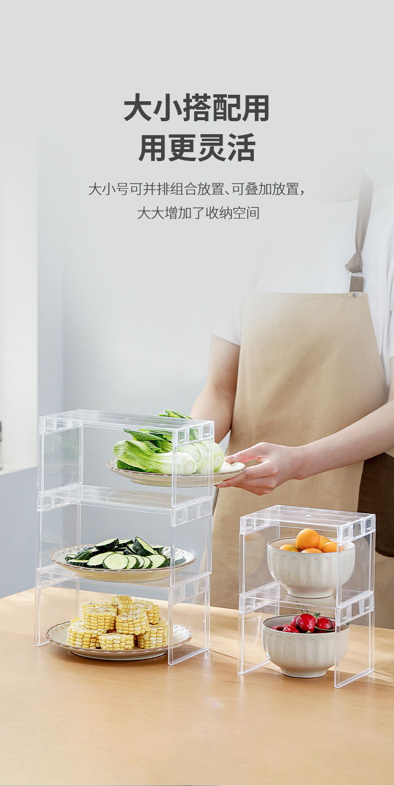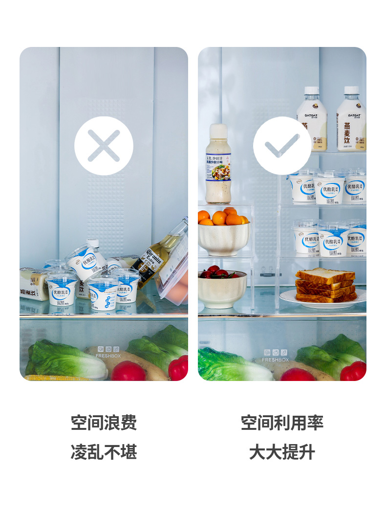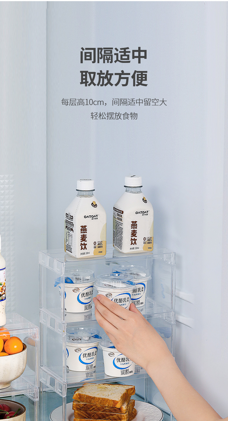 FaSoLa厨房透明分层架冰箱收纳整理置物架多功能调料储物柜神器