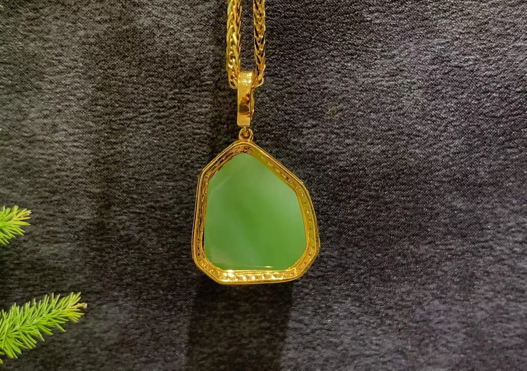【御珠宫坊】新疆黑羊洞金镶碧玉吊坠