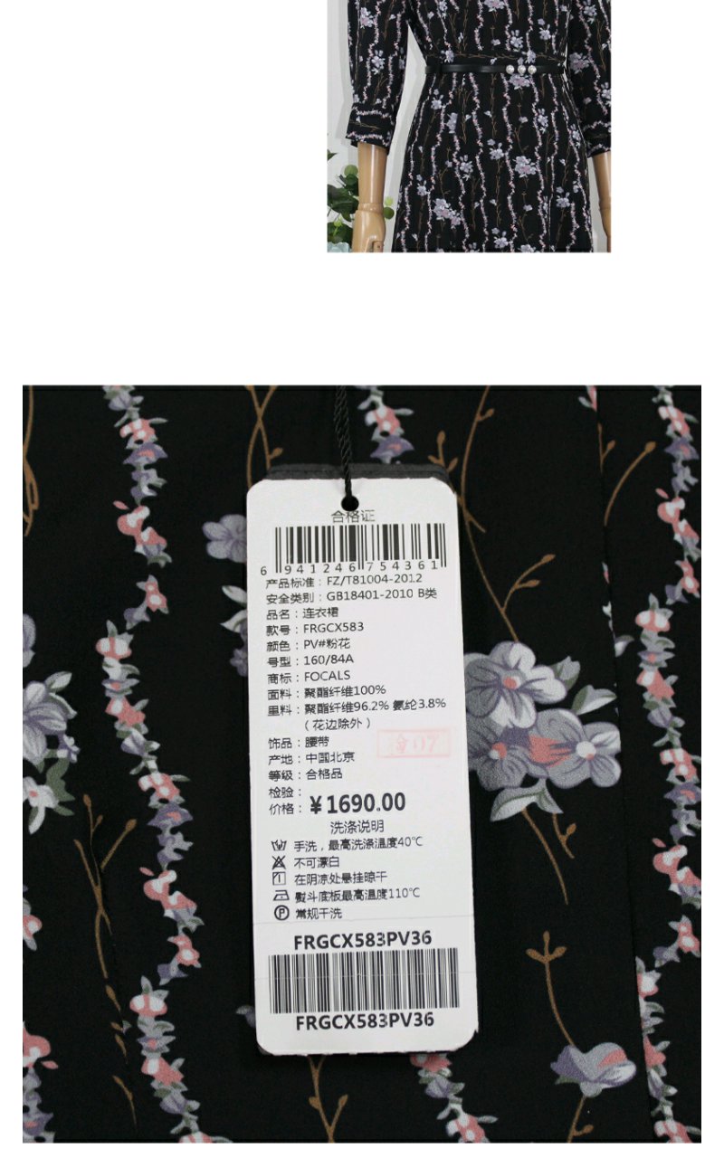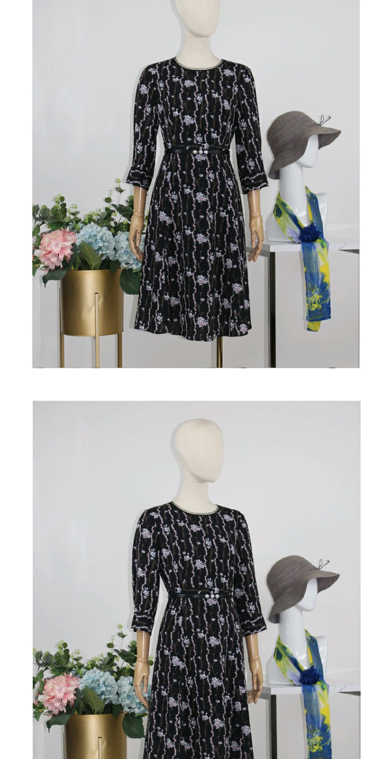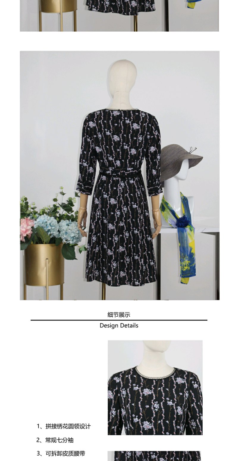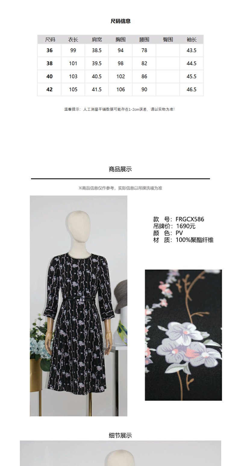 FOCALS福柯斯秋季七分袖修身圆领印花A摆连衣裙FRGCX583PV