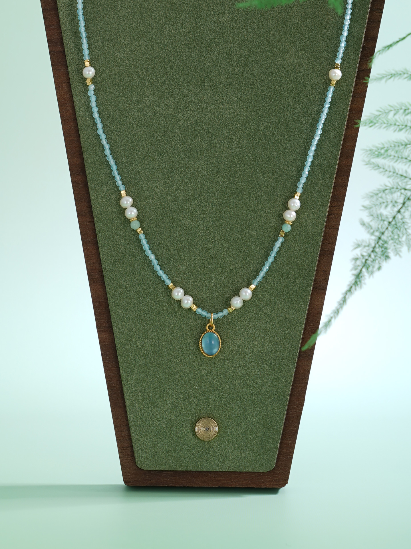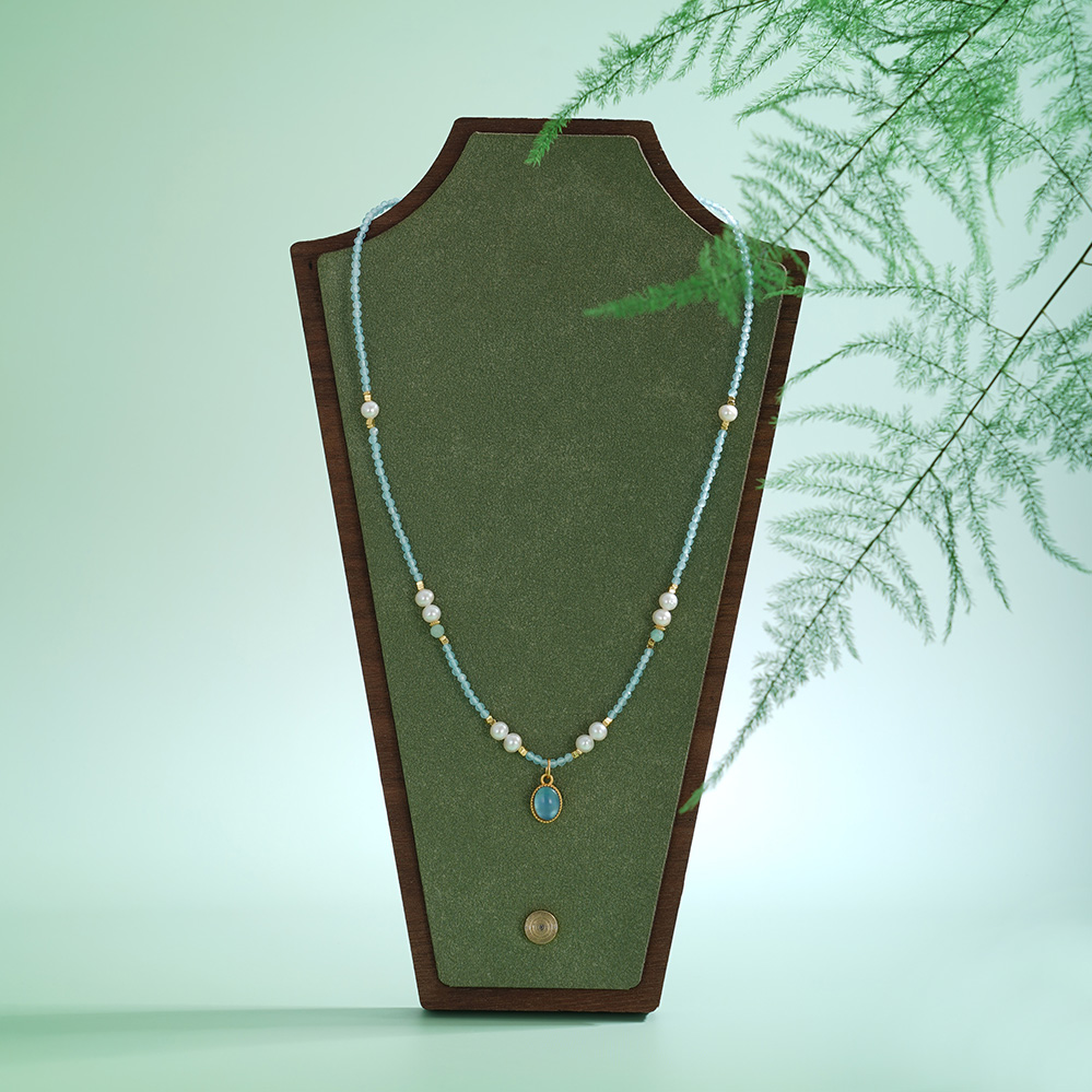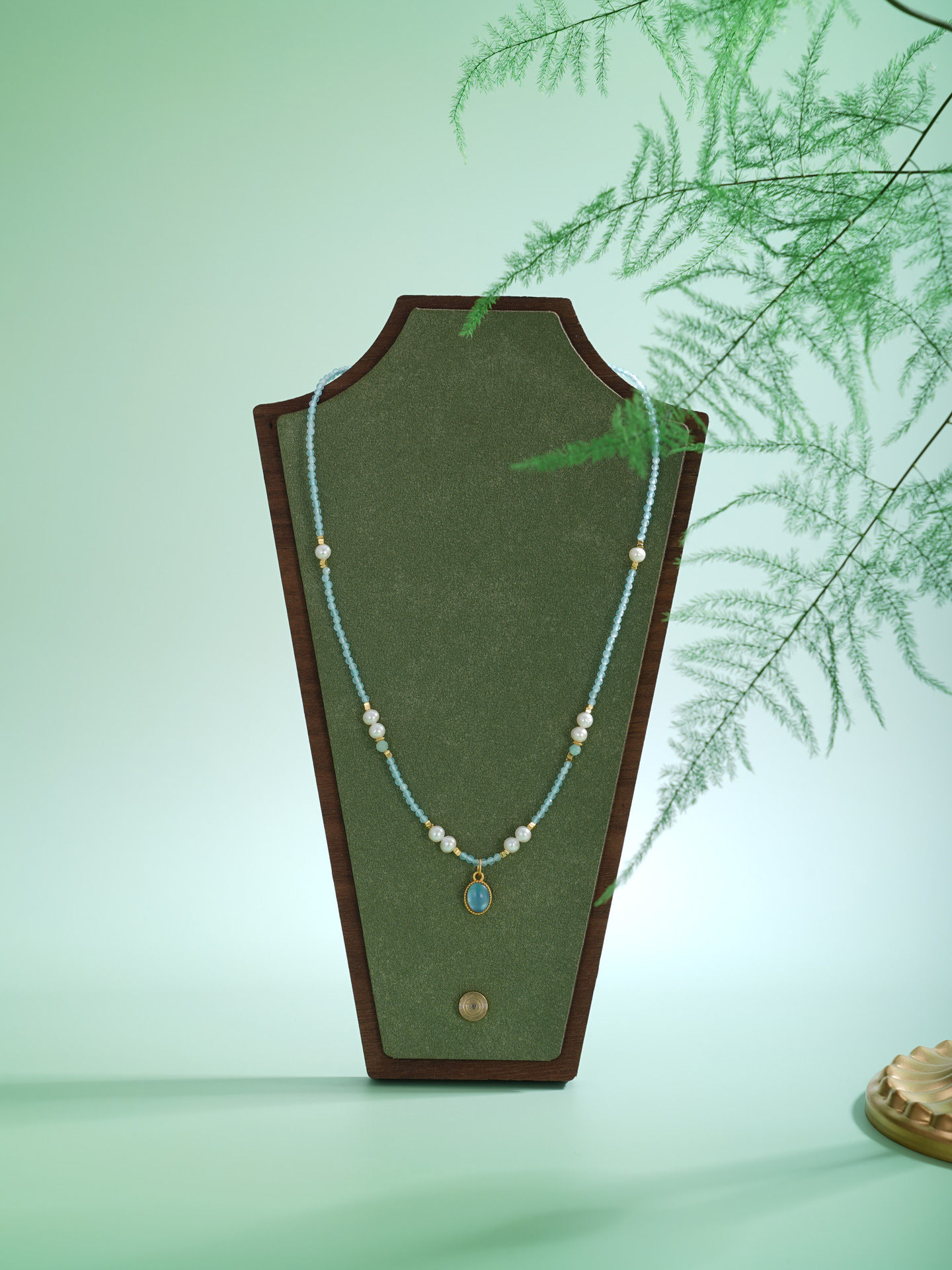 子佩集【蓝梦风华】银S925珍珠惜王妃项链【SGN0670003】2mm蓝珠4mm珍珠惜王妃蓝椭圆2601