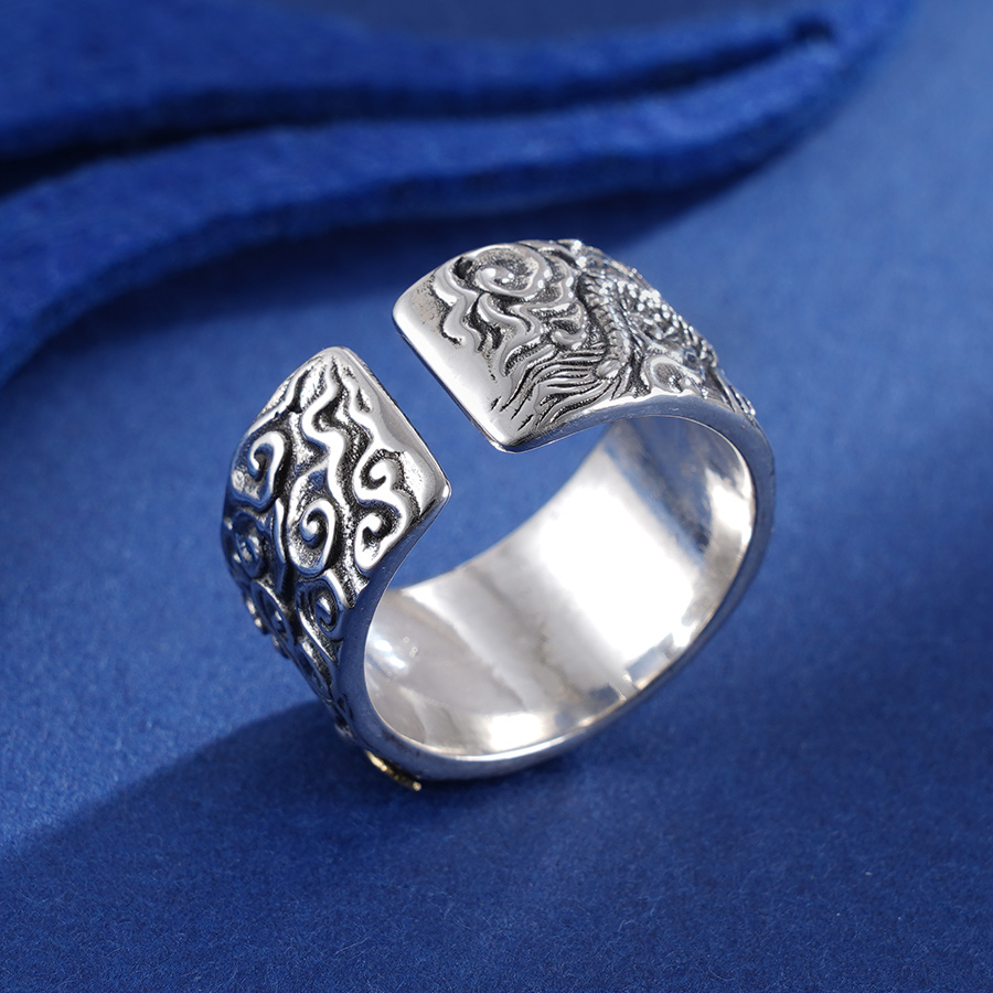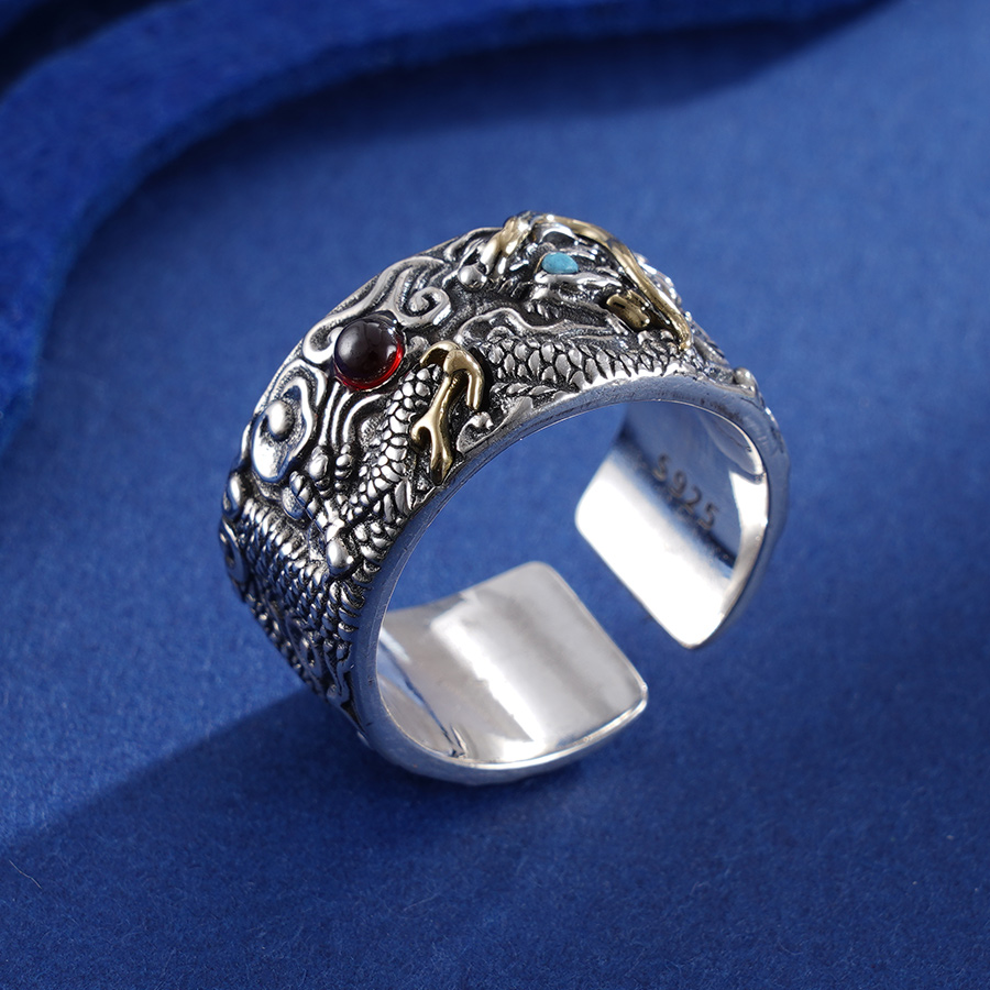 子佩集S925银【纵横四海】戒指【SSR197】带金色仿古龙2401