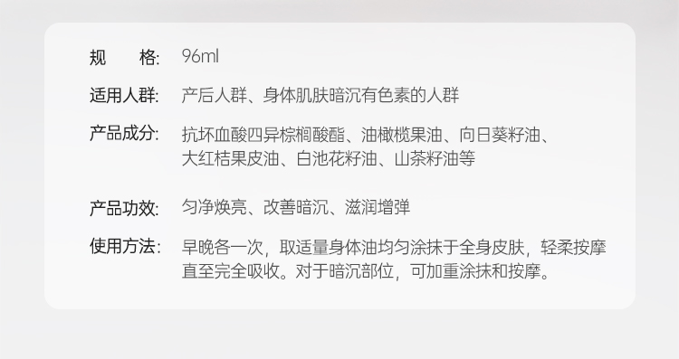 【焕亮身体油】妈妈必备! 以油亮肤 改善身体肌肤暗沉 舒缓干痒红 质地清爽不沾衣 匀净焕亮身体油(96ml)